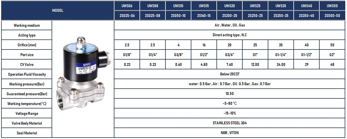 2 WAY SOLENOID VALVE STAINLESS STEEL 304