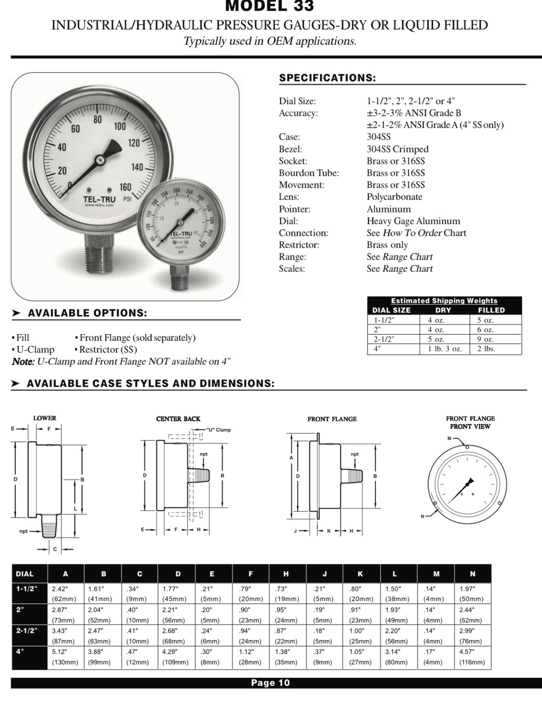 "TEL-TRU" 33 Industrial Pressure Gauge
