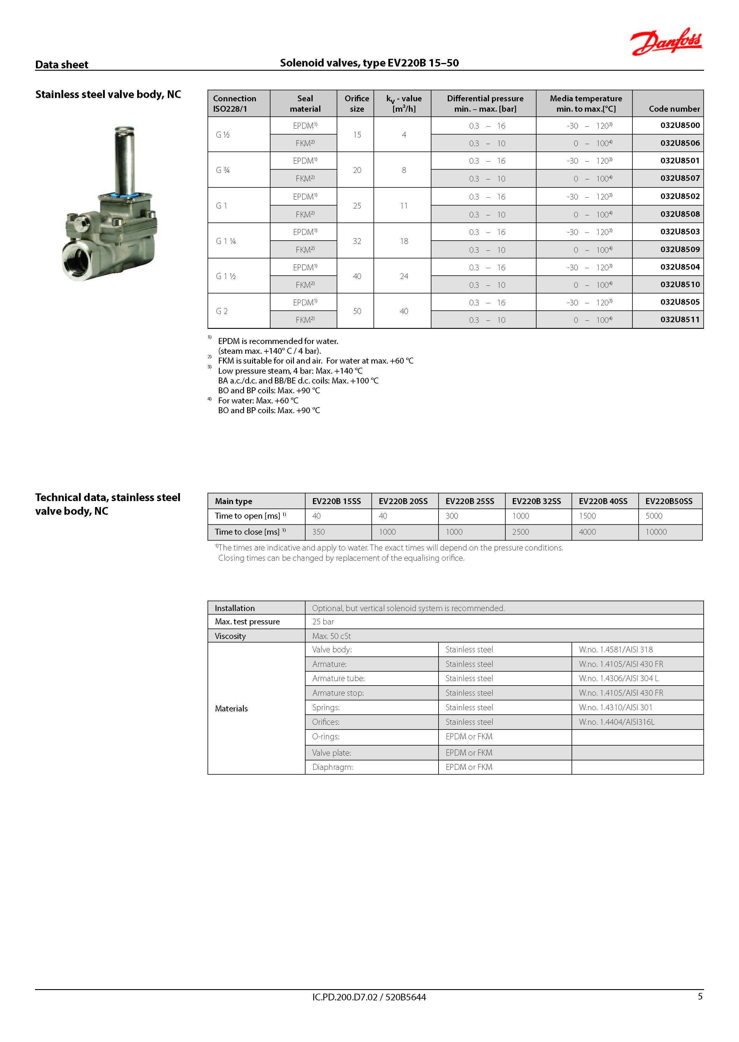 DANFOSS 2/2-WAY SOLENOID VALVE EV220B (STAINLESS STEEL)
