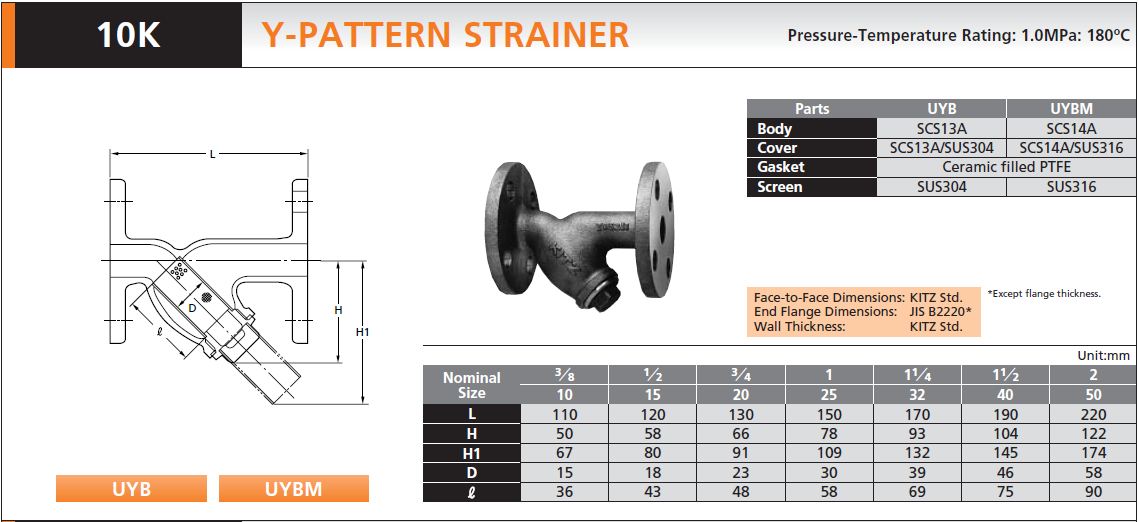 KITZ Stainless Steel Y-Strainer Model. 10UYB