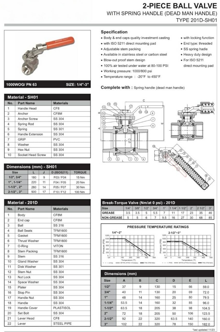 "AVA" Stainless Steel Spring Return Handle Floating Ball Valve