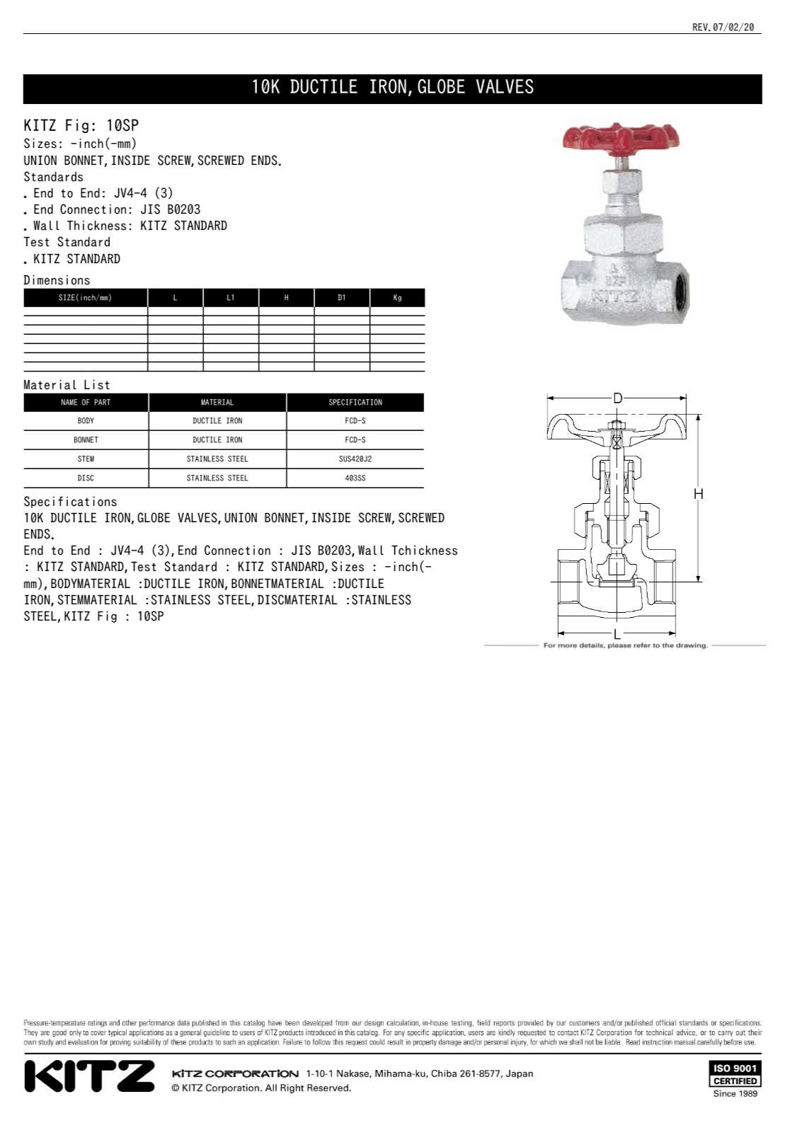 "KITZ" DUCTILE IRON GLOBE VALVE ,10SP