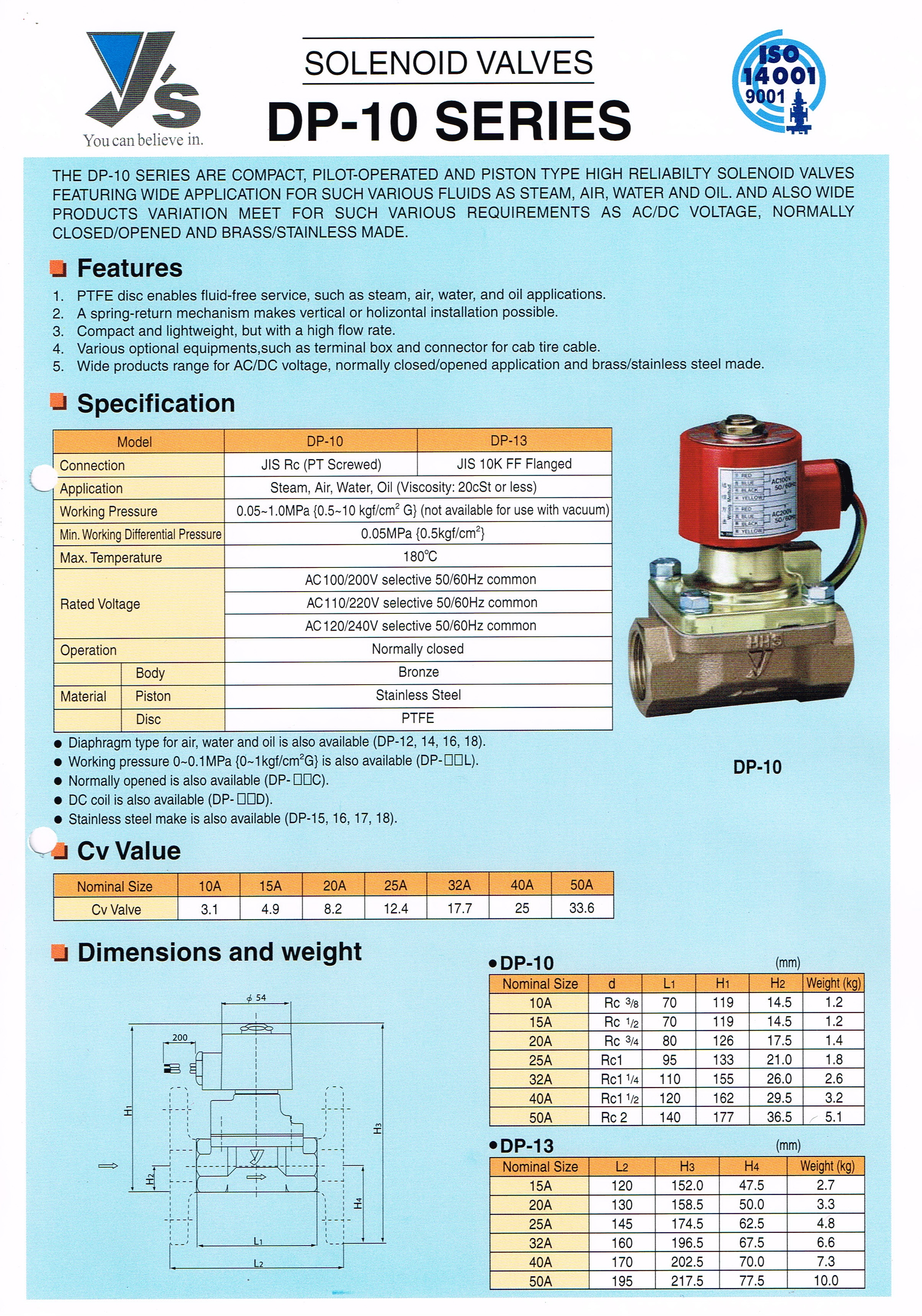 2 WAY SOLENOID VALVE 110 VAC /220 VAC