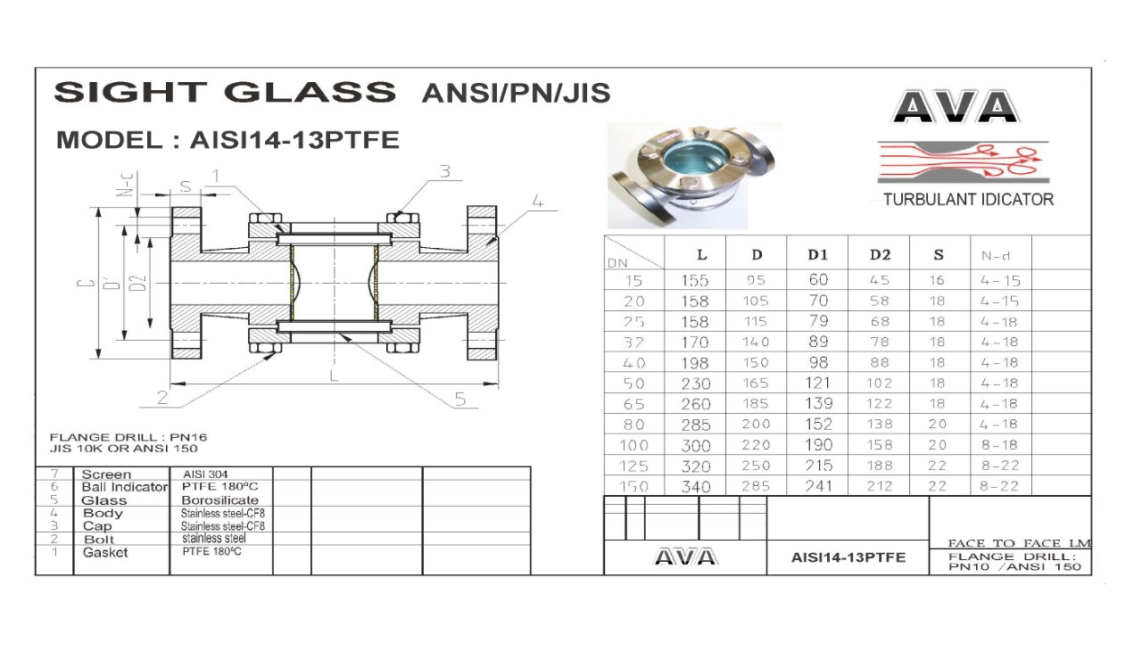 "AVA" SIGHT GLASS DOUBLE WINDOW STAINLESS STEEL FLANGED