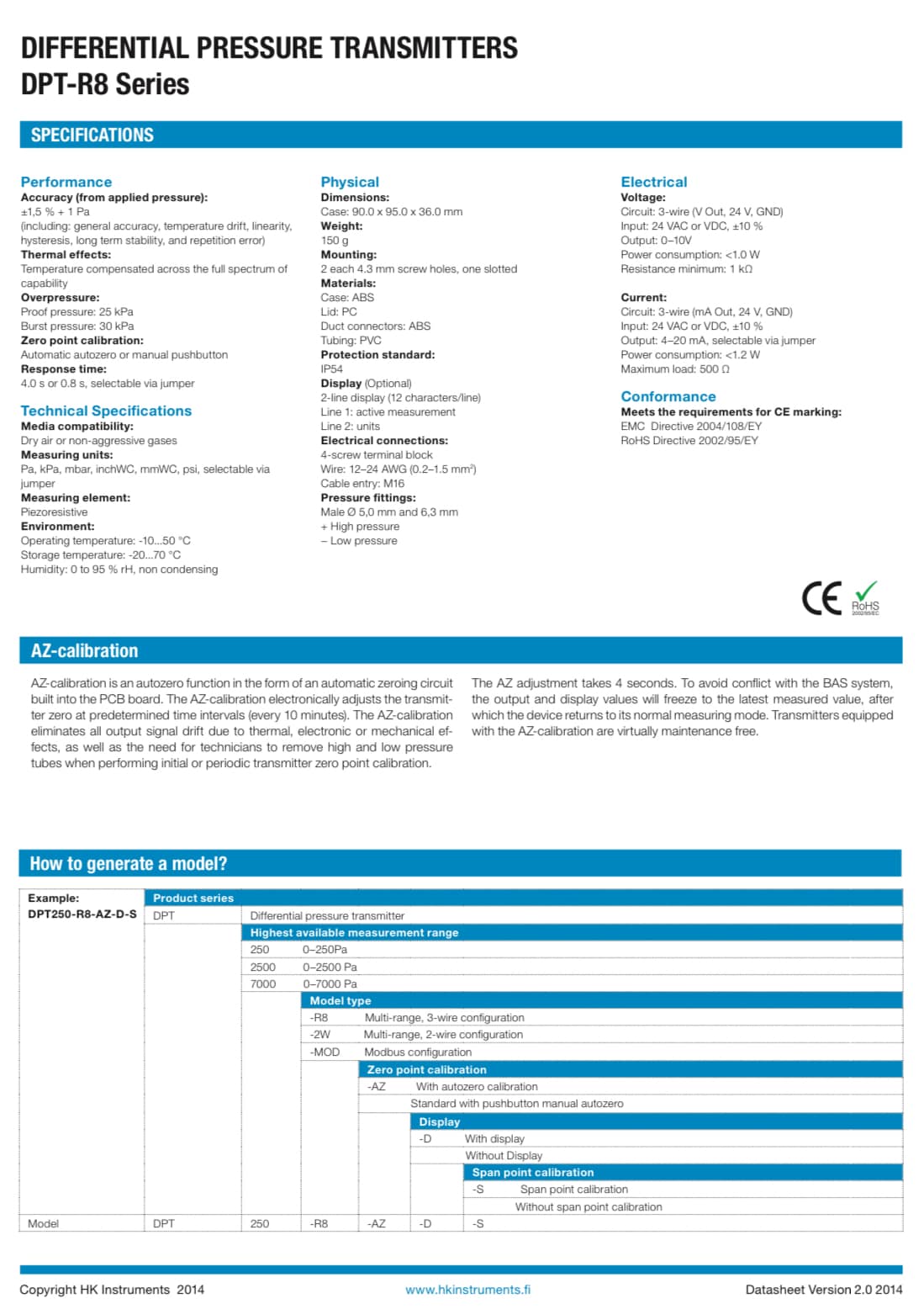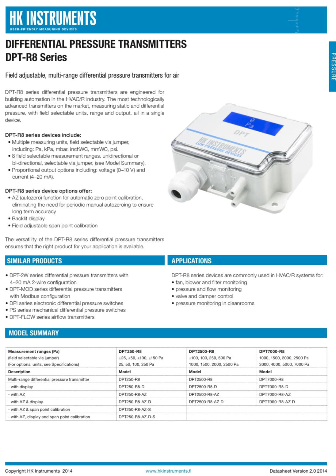 "HK" Instruments DPT-R8 Series Pressure Transmitter
