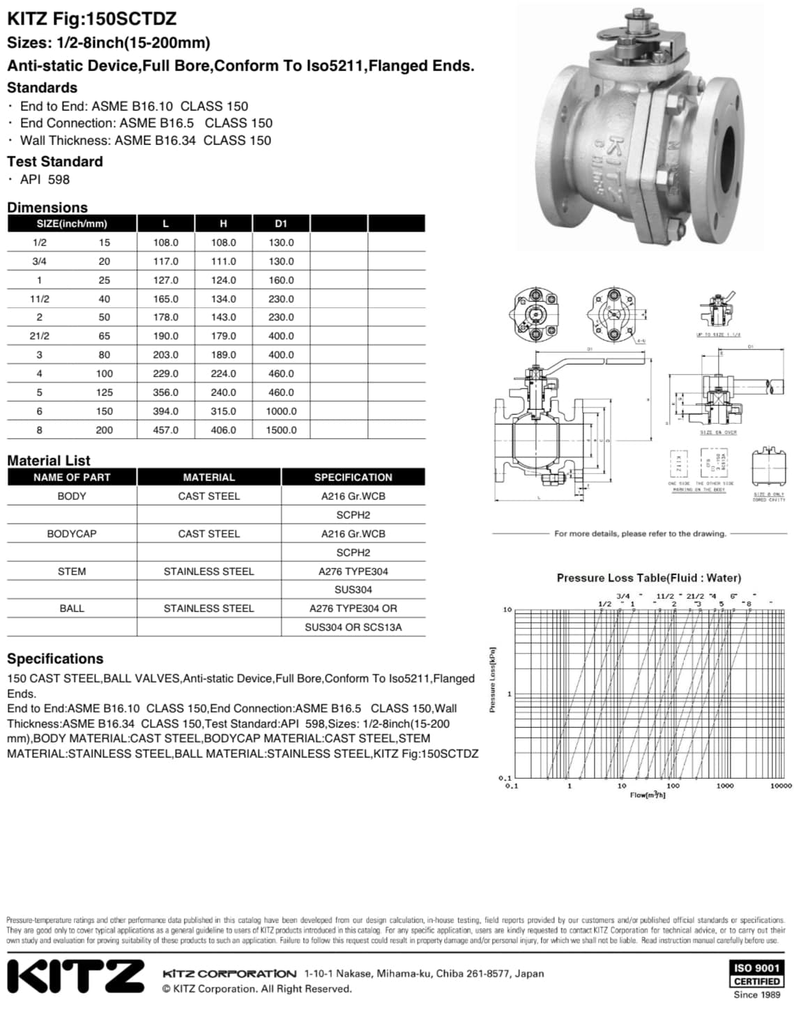 "KITZ" 2-PCS CAST STEEL BALL VALVE ,150SCTDZ