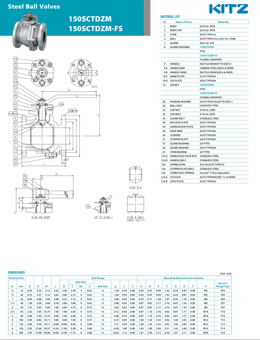"KITZ" 2-PCS CAST STEEL BALL VALVE ,150SCTDZM-FS (Fire Safe)