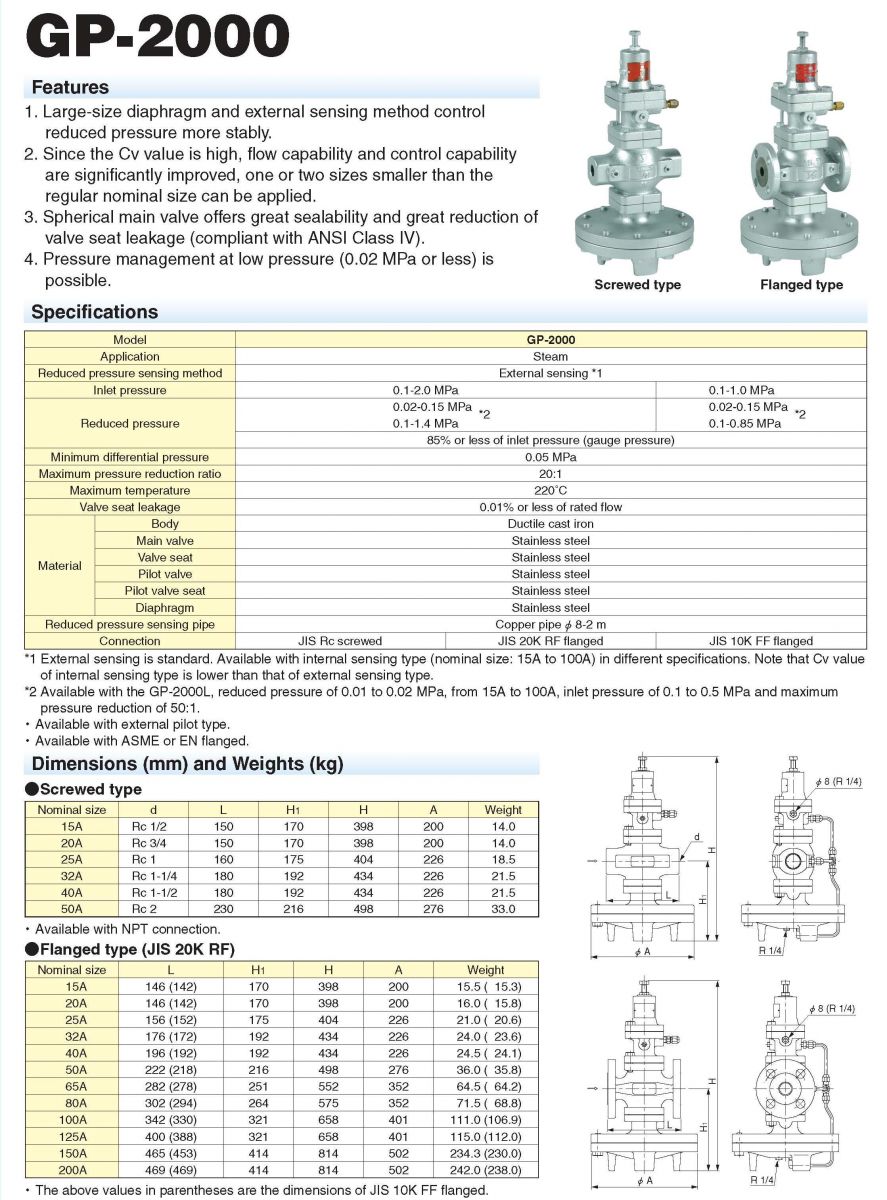 PRESSURE REDUCING VALVE ( GP-2000 )