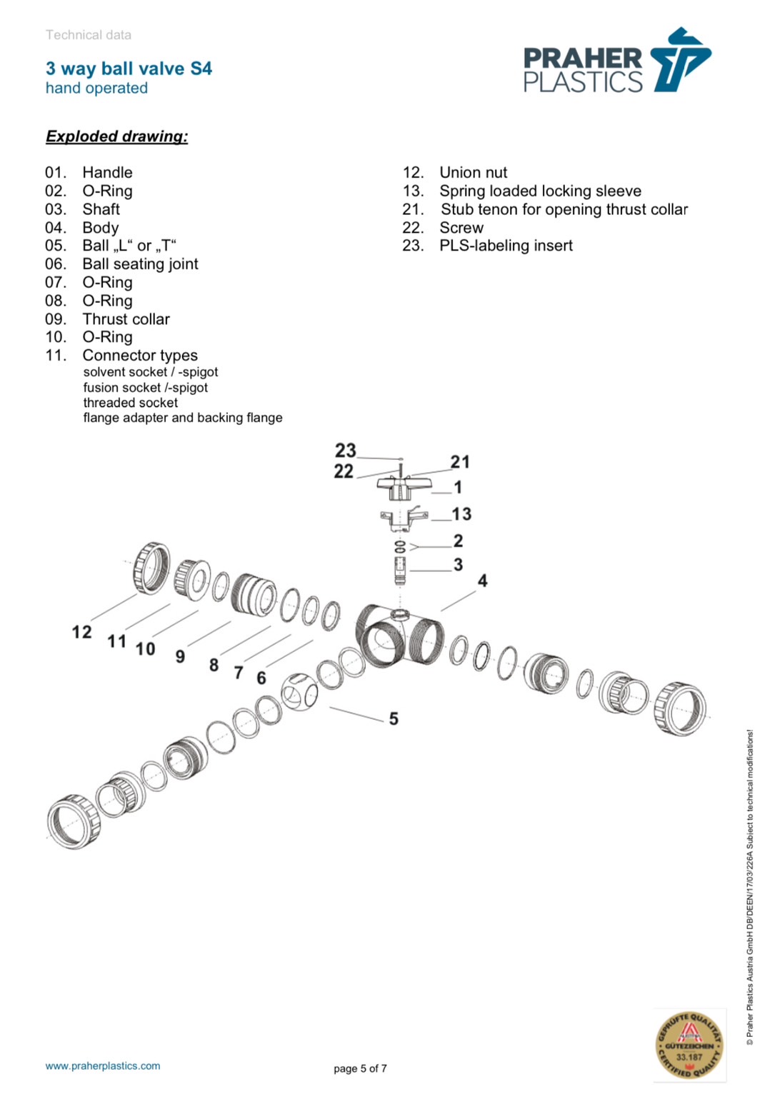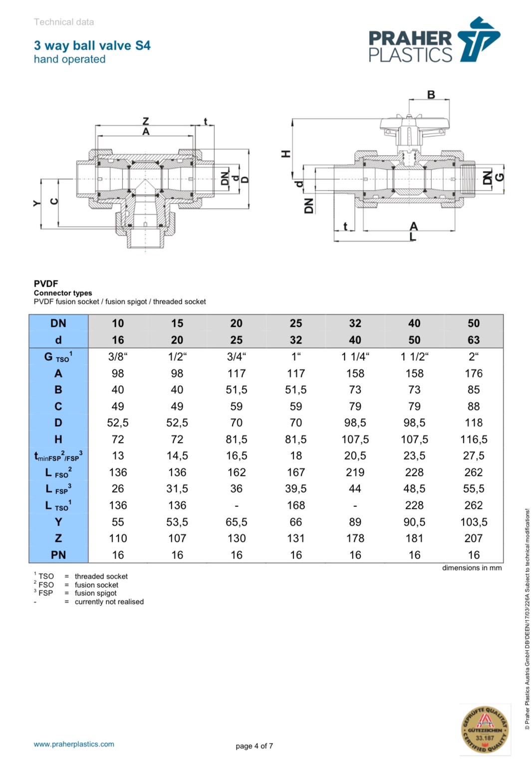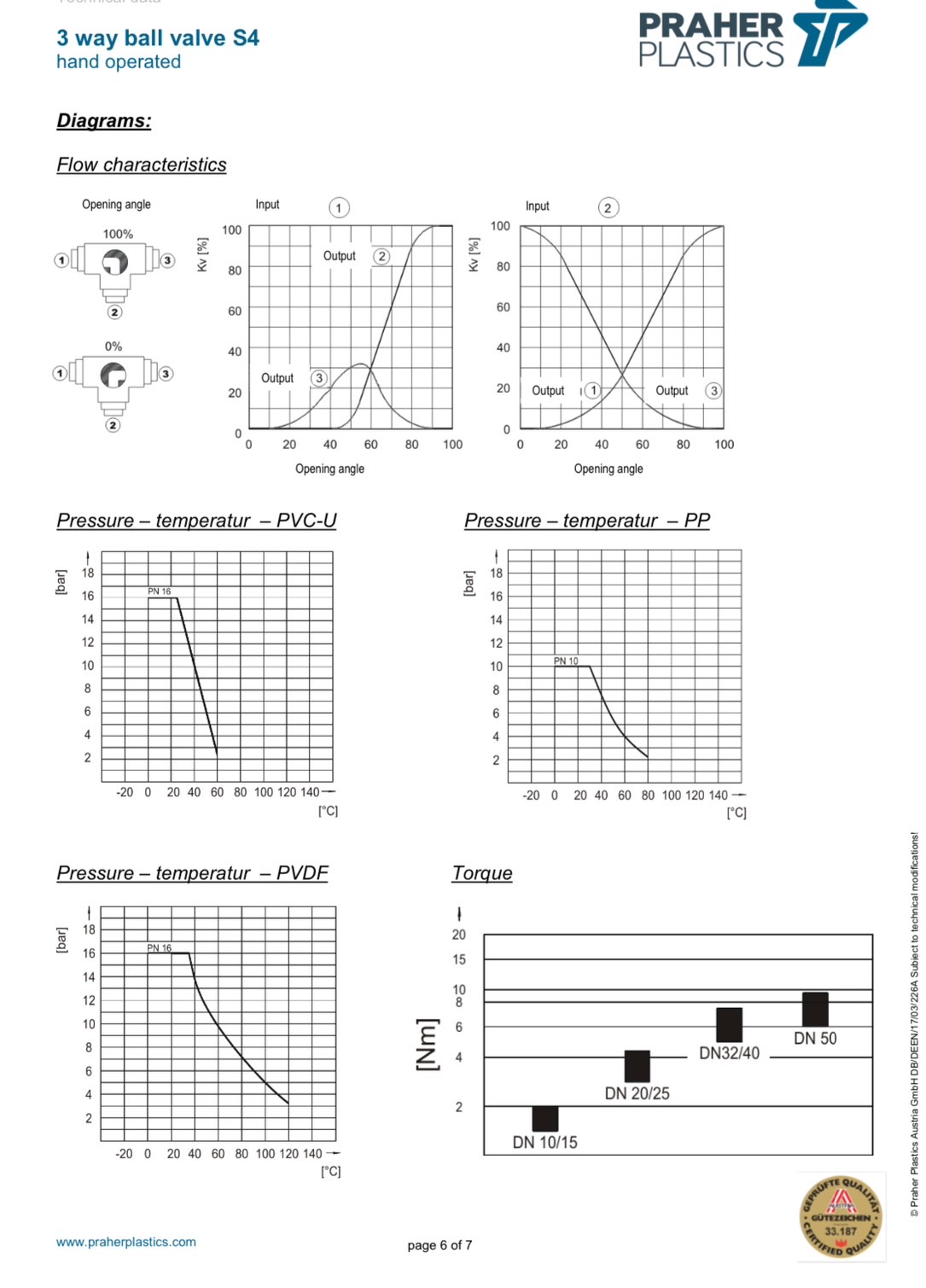 "PRAHER" 3-way Ball Valve S4 PVC-U