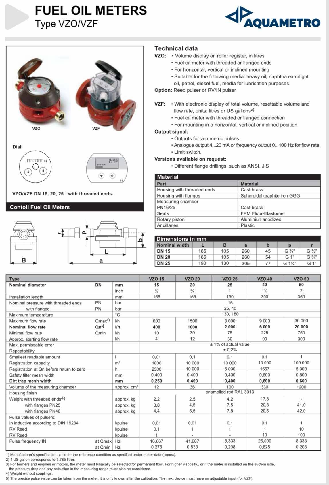 "Aqua Metro" Mechanical Oil Flow Meters, VZO/VZF