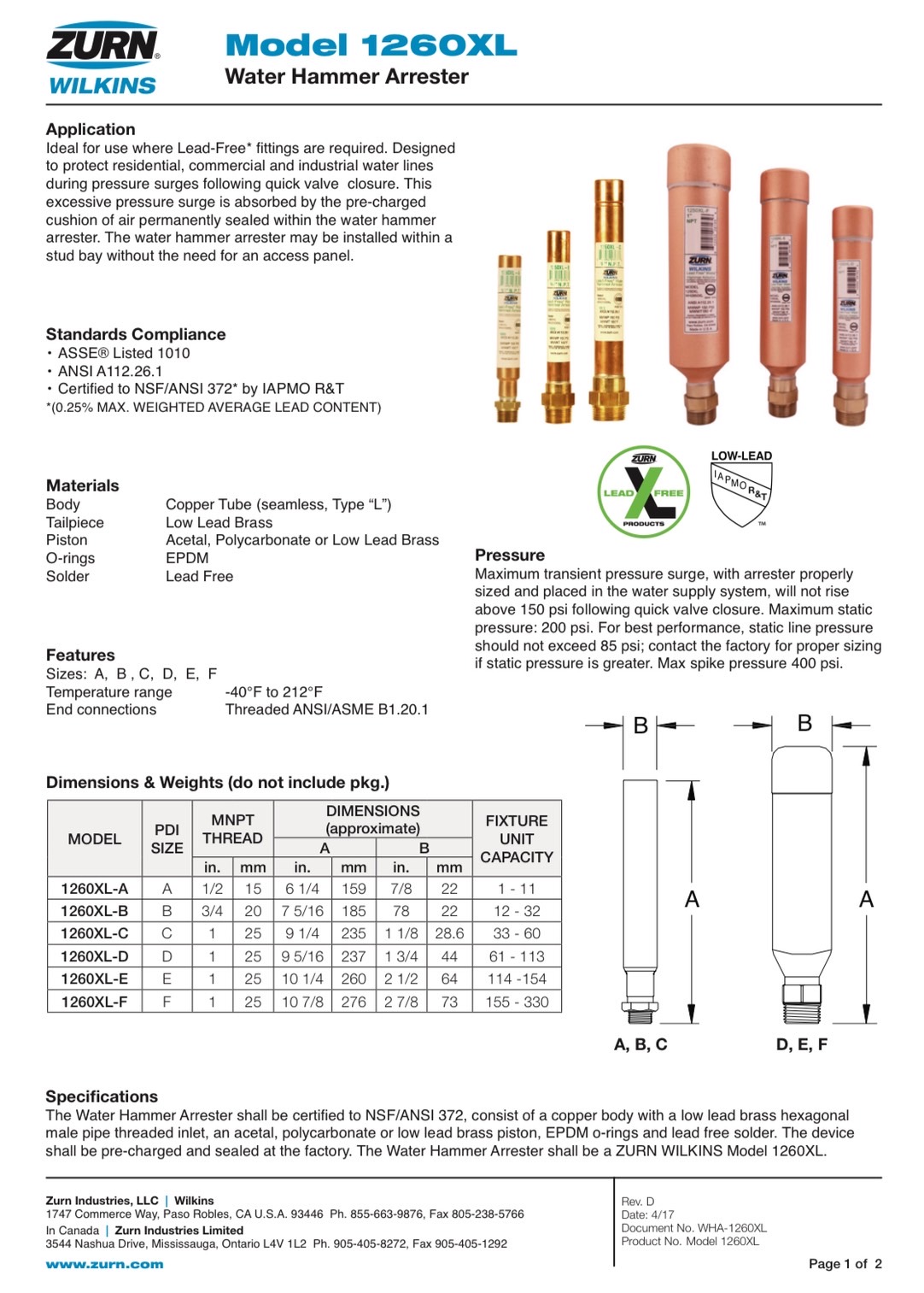 "ZURN" Water Hammer Arrester