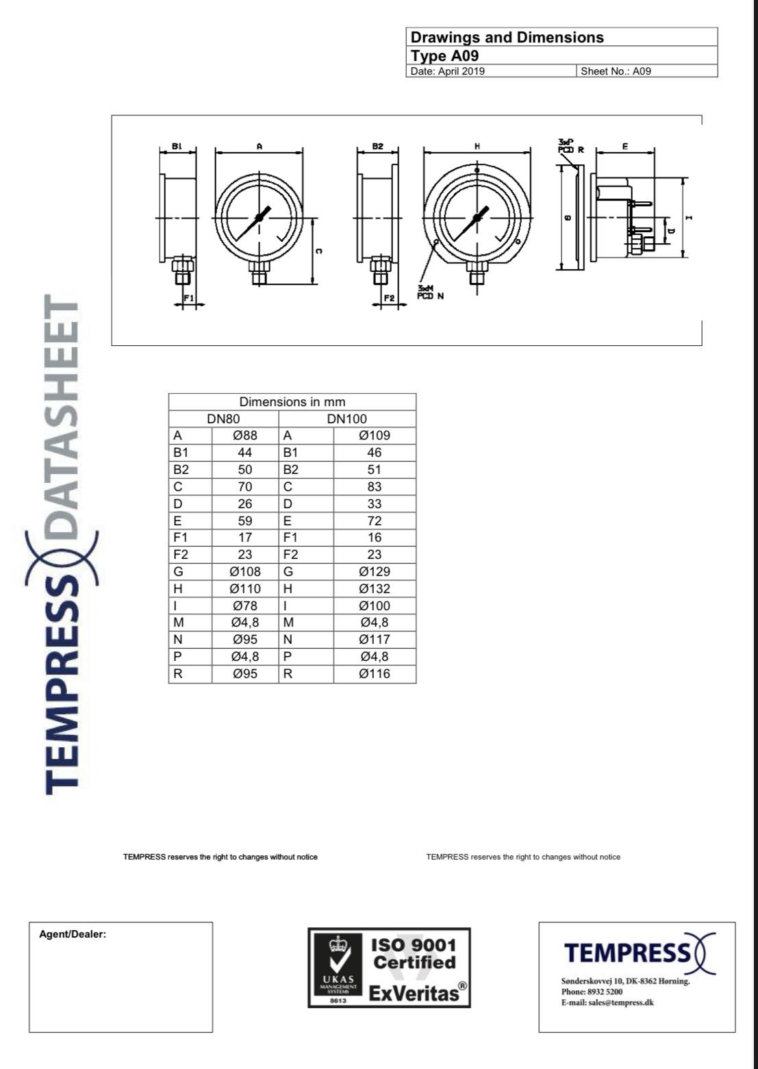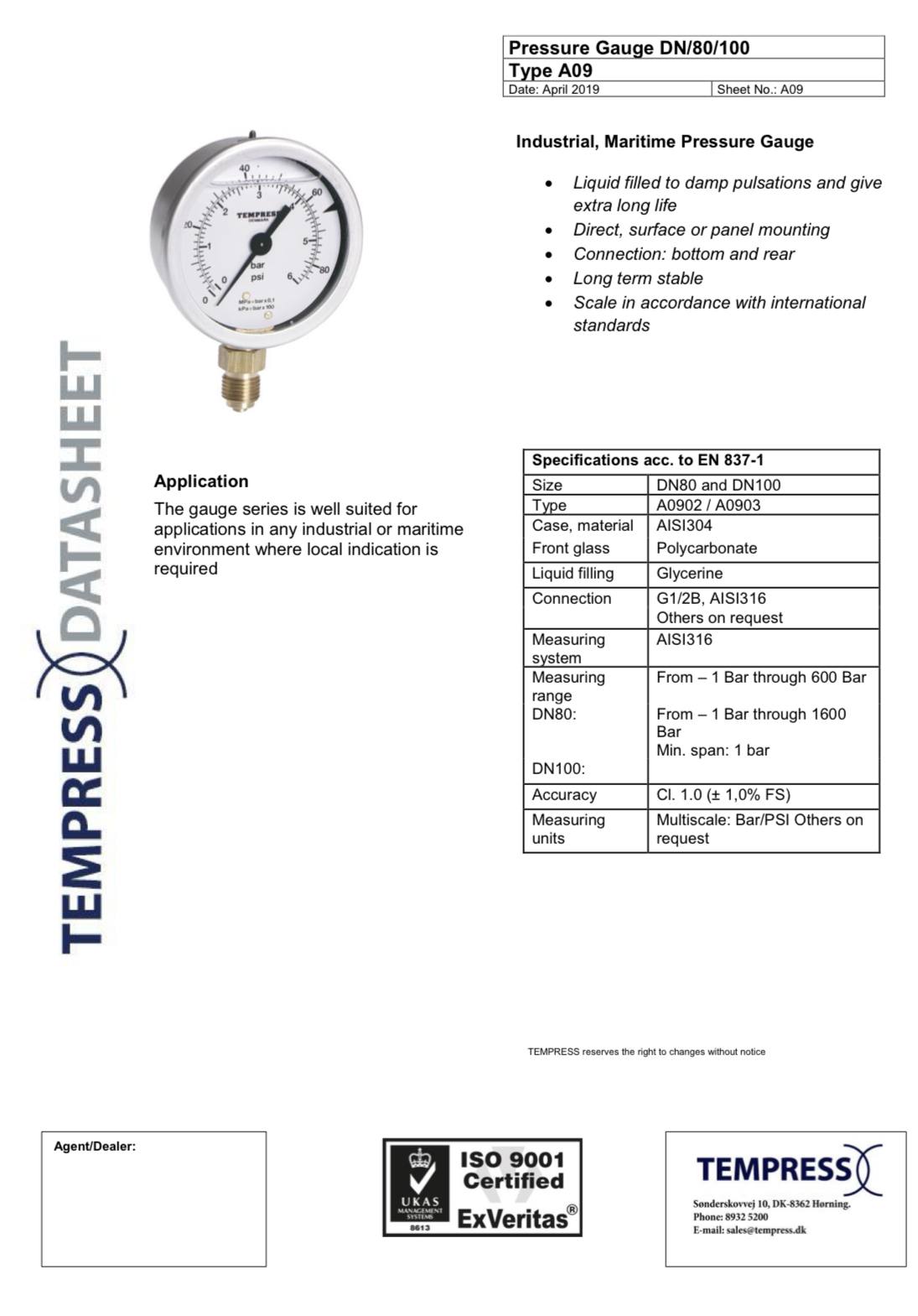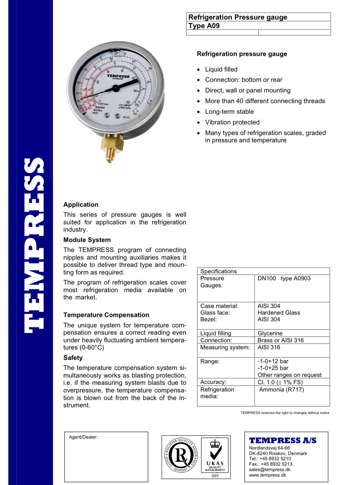 "TEMPRESS" PRESSURE GAUGE DN100 TYPE A09 REFRIGERATION