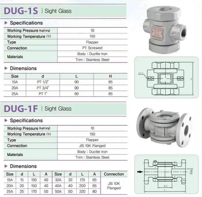 "YNV" Sight Glass, DUG-1S , 1F