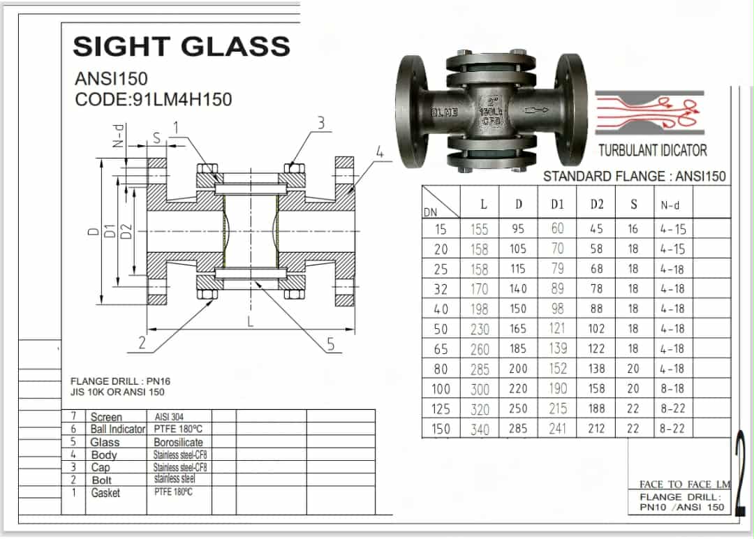 "AVA" SIGHT GLASS DOUBLE WINDOW STAINLESS STEEL ,FLANGE ANSI 150