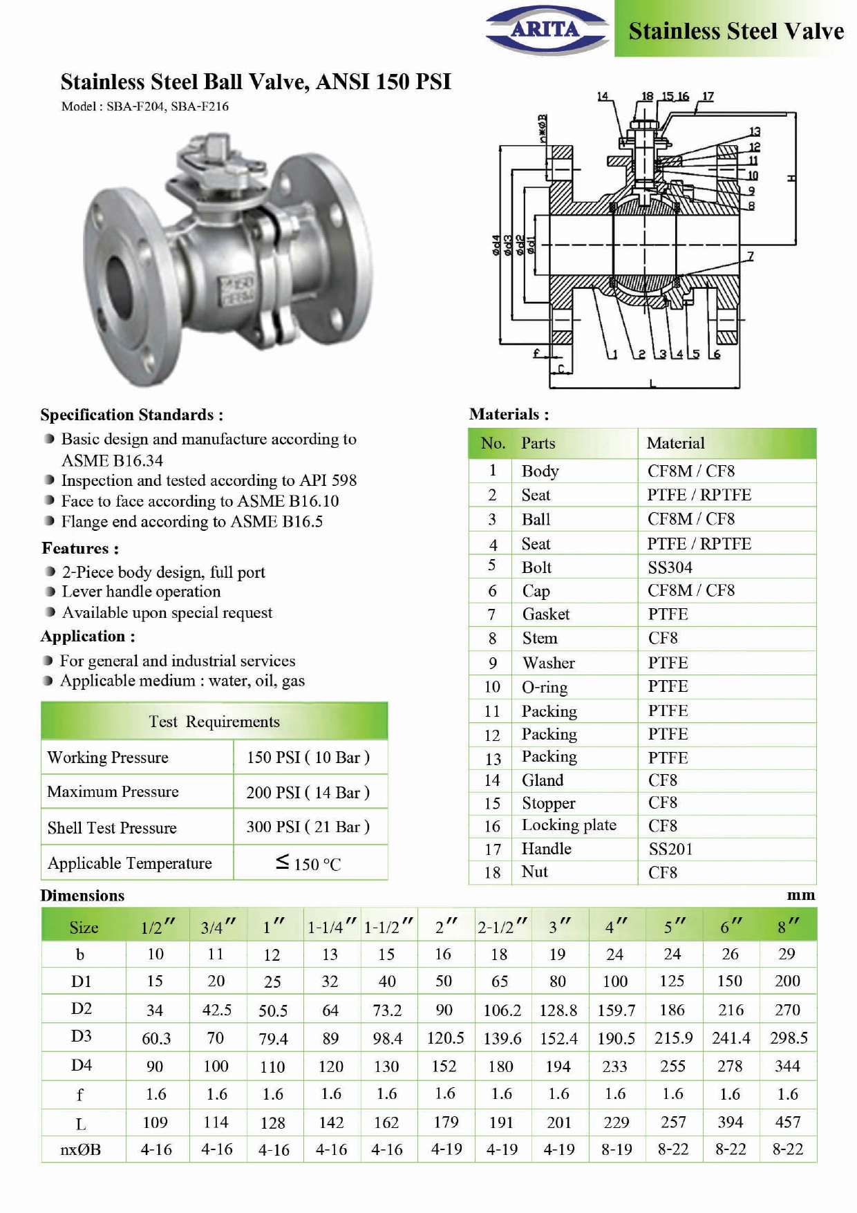 ARITA 2-PCS STAINLESS STEEL BALL VALVE FLANGED ANSI 150