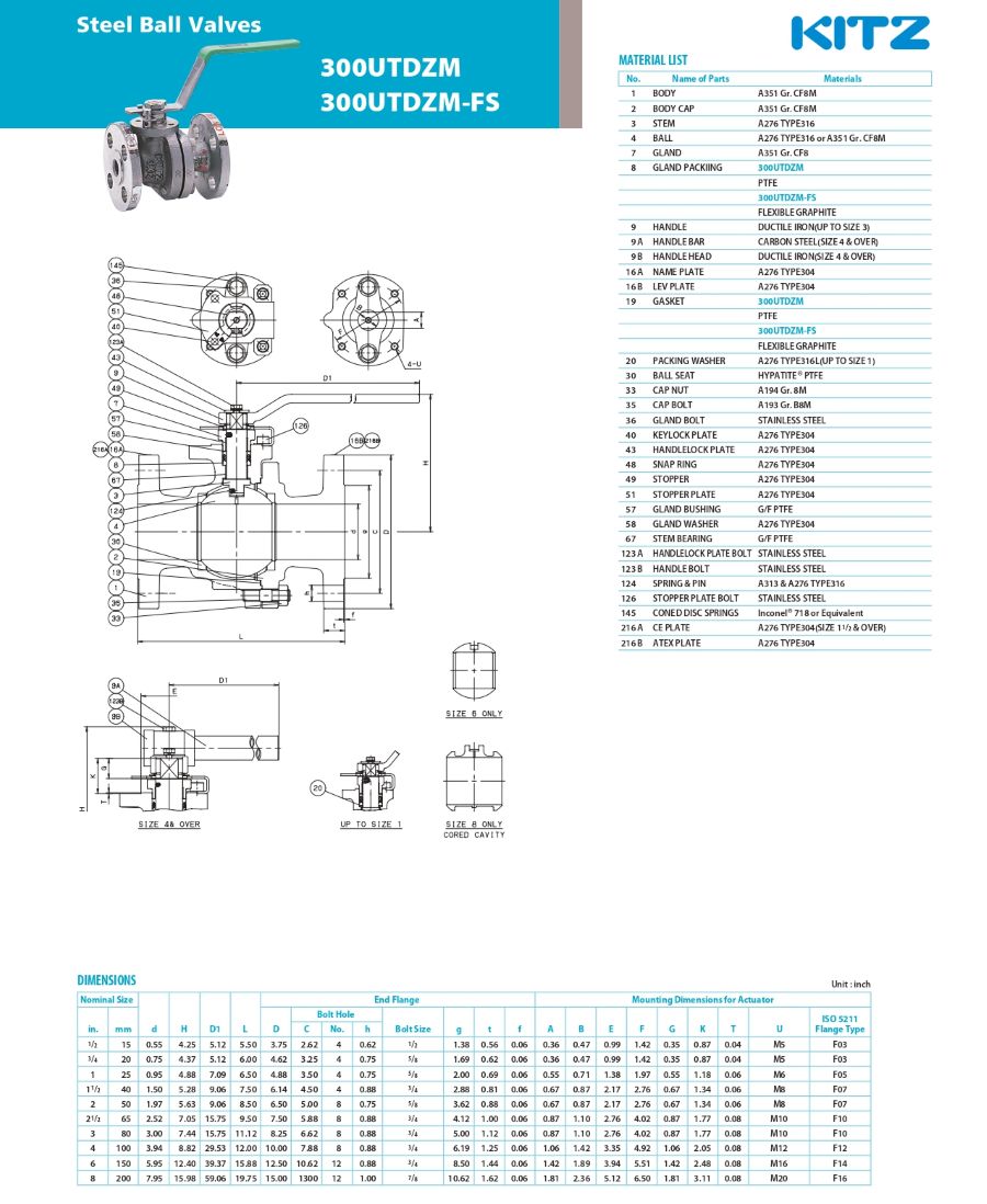 "KITZ" Stainless Steel Ball Valve 300UTDZM, Class 300