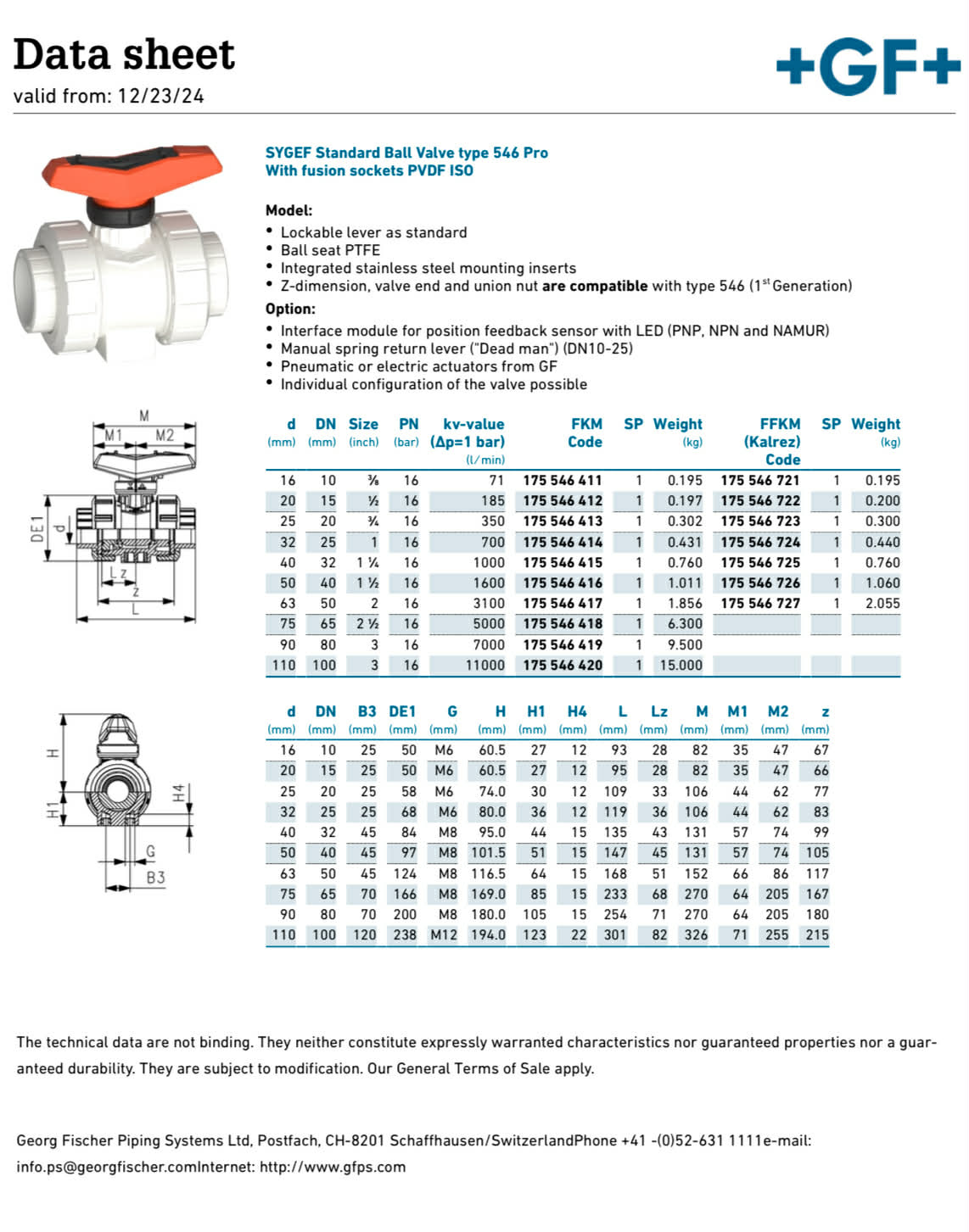 +GF+ TRUE UNION BALL VALVE 546 PVDF