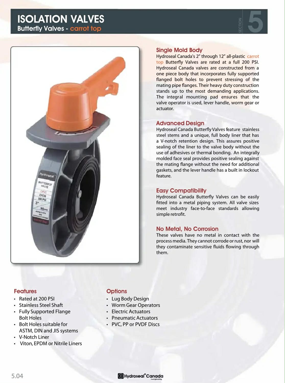 "HYDROSEAL - CARROT" BUTTERFLY VALVE CPVC