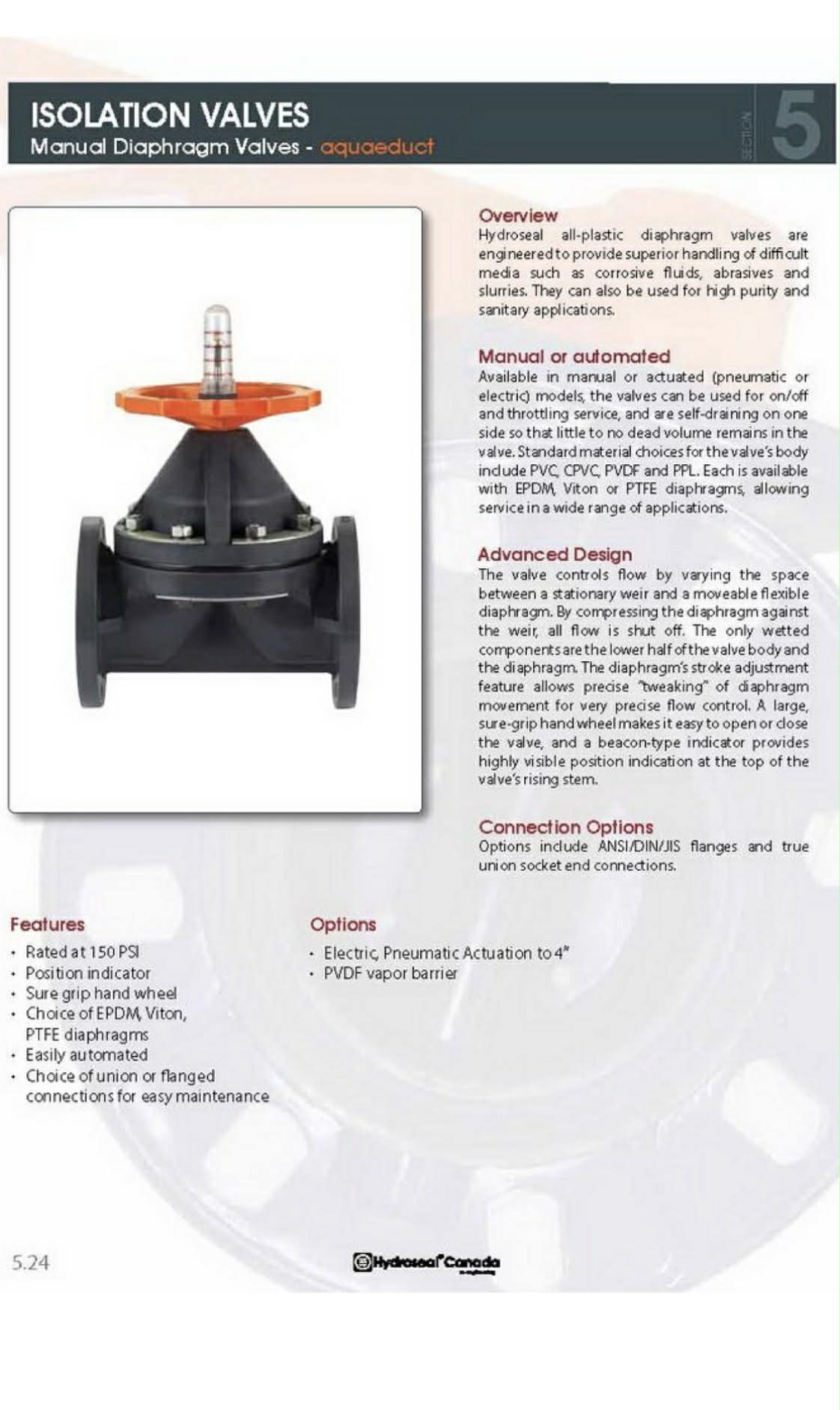 "HYDROSEAL CANADA" Diaphragm Valves – AQUAEDUCT