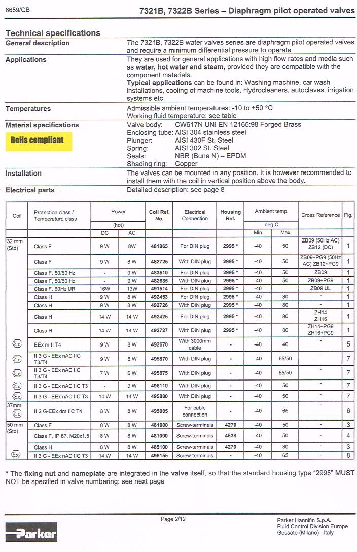 Parker Solenoid Valve 7321B With Spare diaphragm replace
