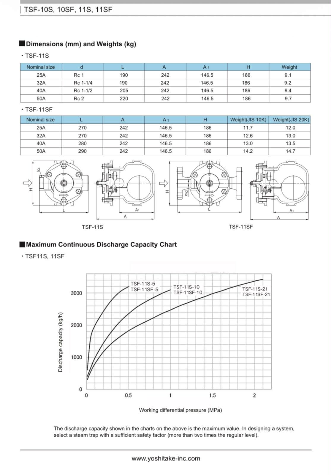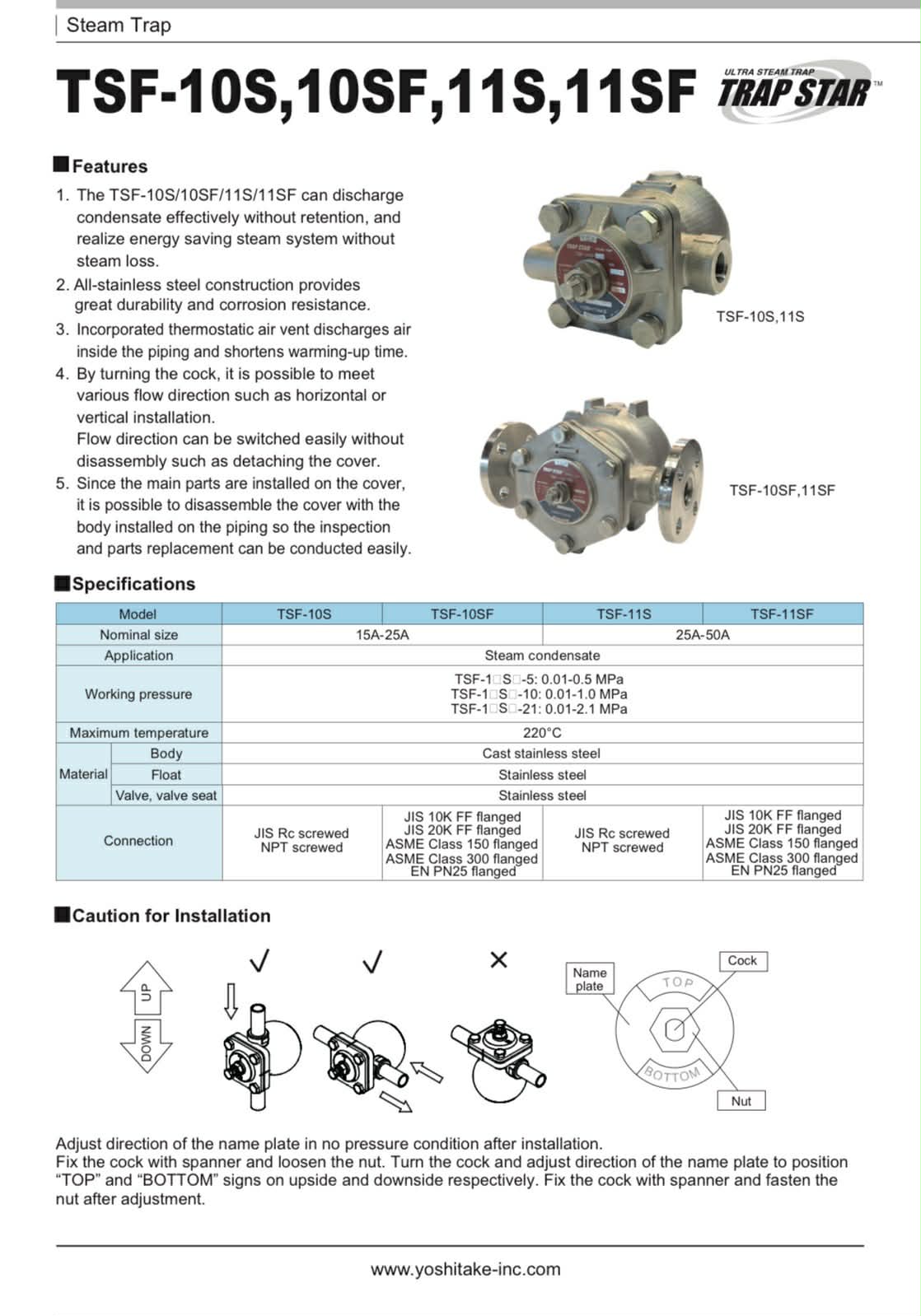 "YOSHITAKE" FLOAT & THERMOSTATIC STEAM TRAPS, TSF-10,10F-11,11F