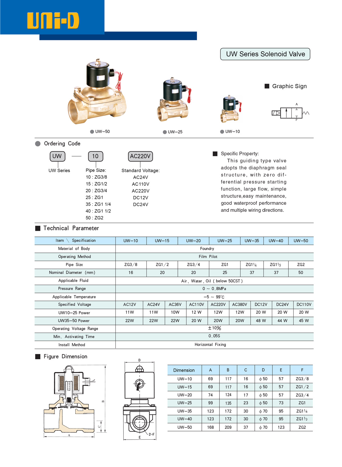 "UNI-D" 2/2 Brass Solenoid valve , NC