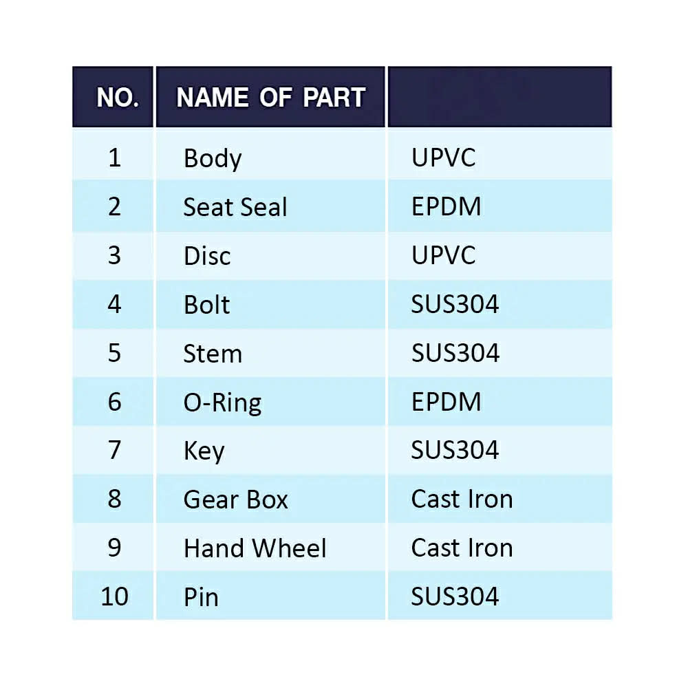 "K L" BUTTERFLY VALVE UPVC Gear type