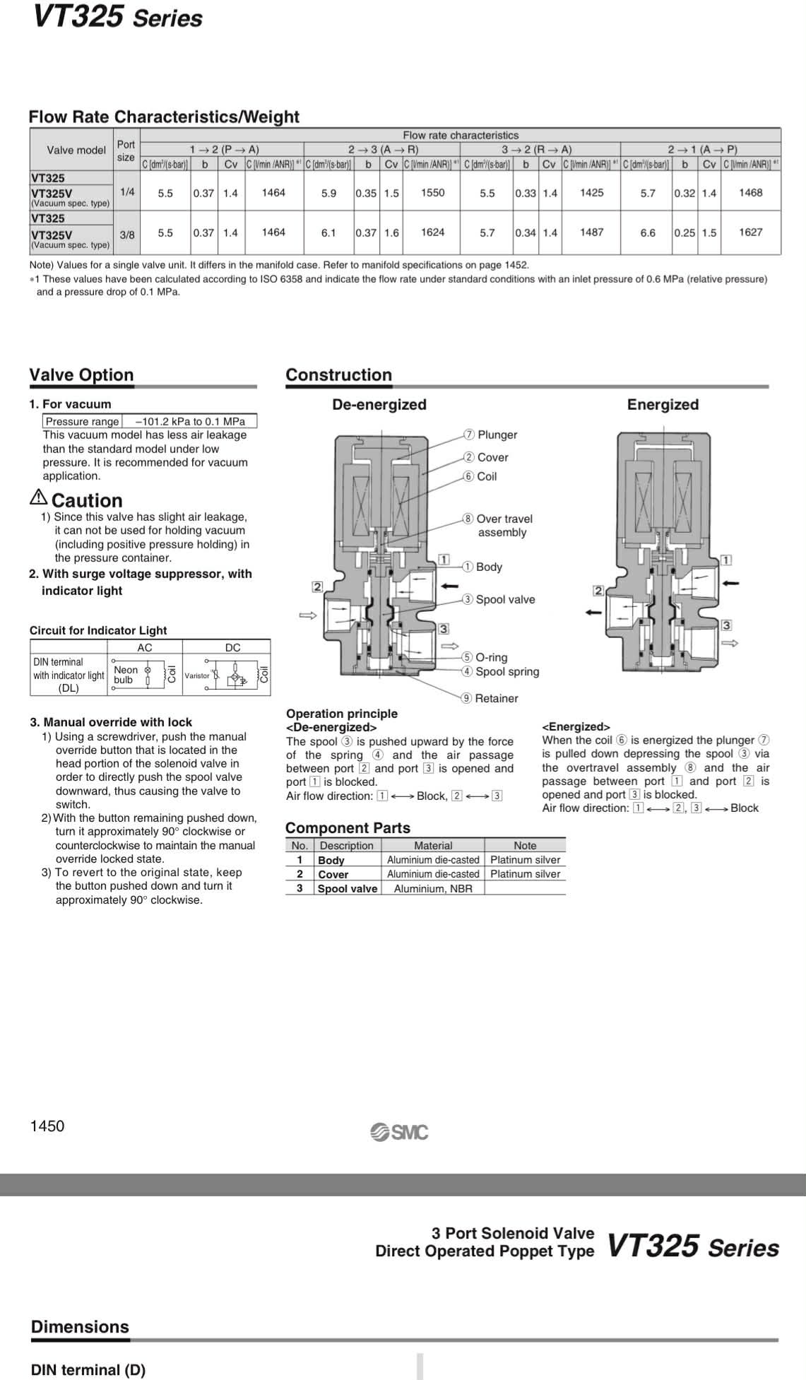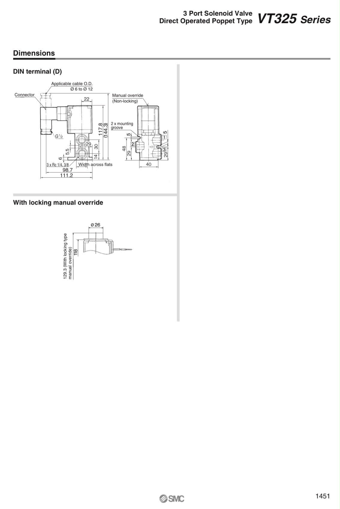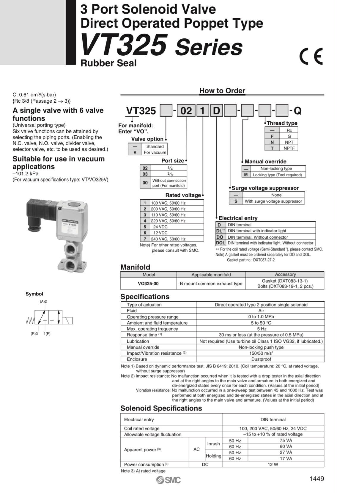 SMC 3-PORT SOLENOID VALVE , VT325V-035DL