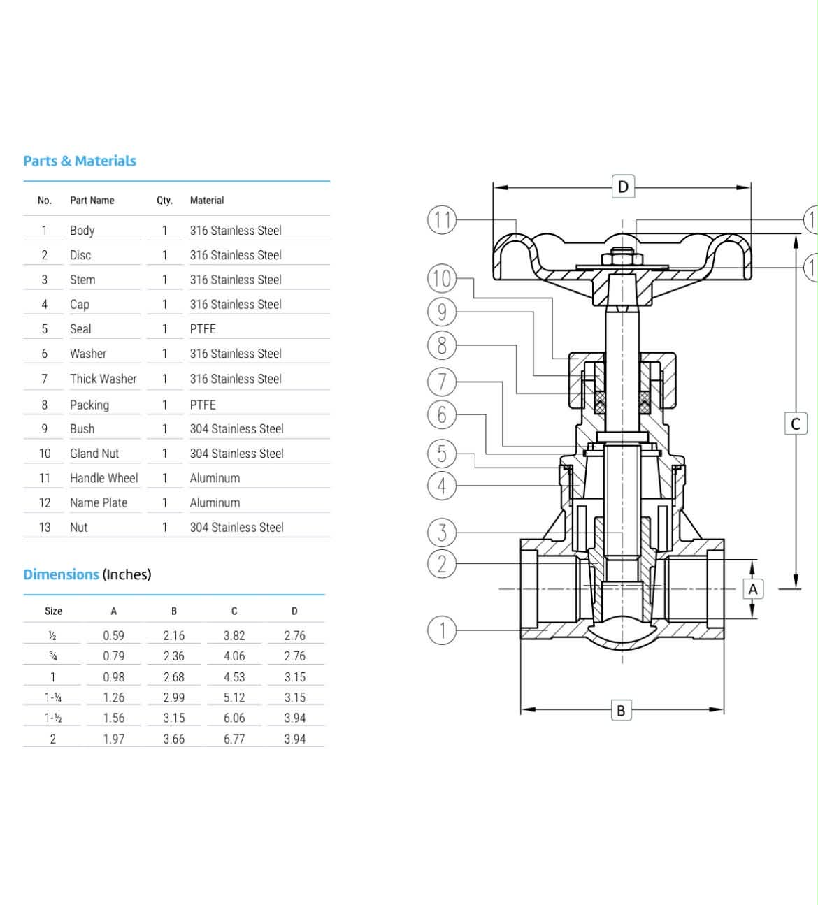 "AVA" GATE VALVE CF8M, 200 WOG