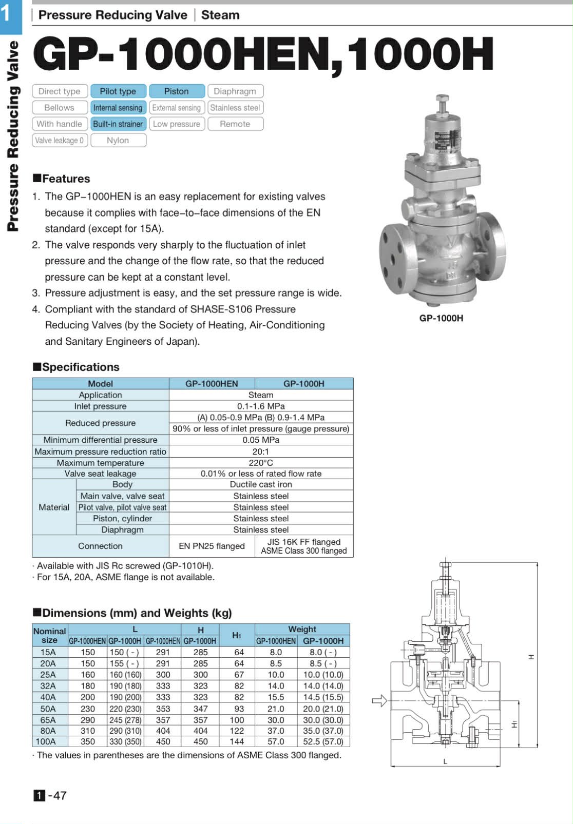 YOSHITAKE PRESSURE REDUCING VALVE GP-1000H