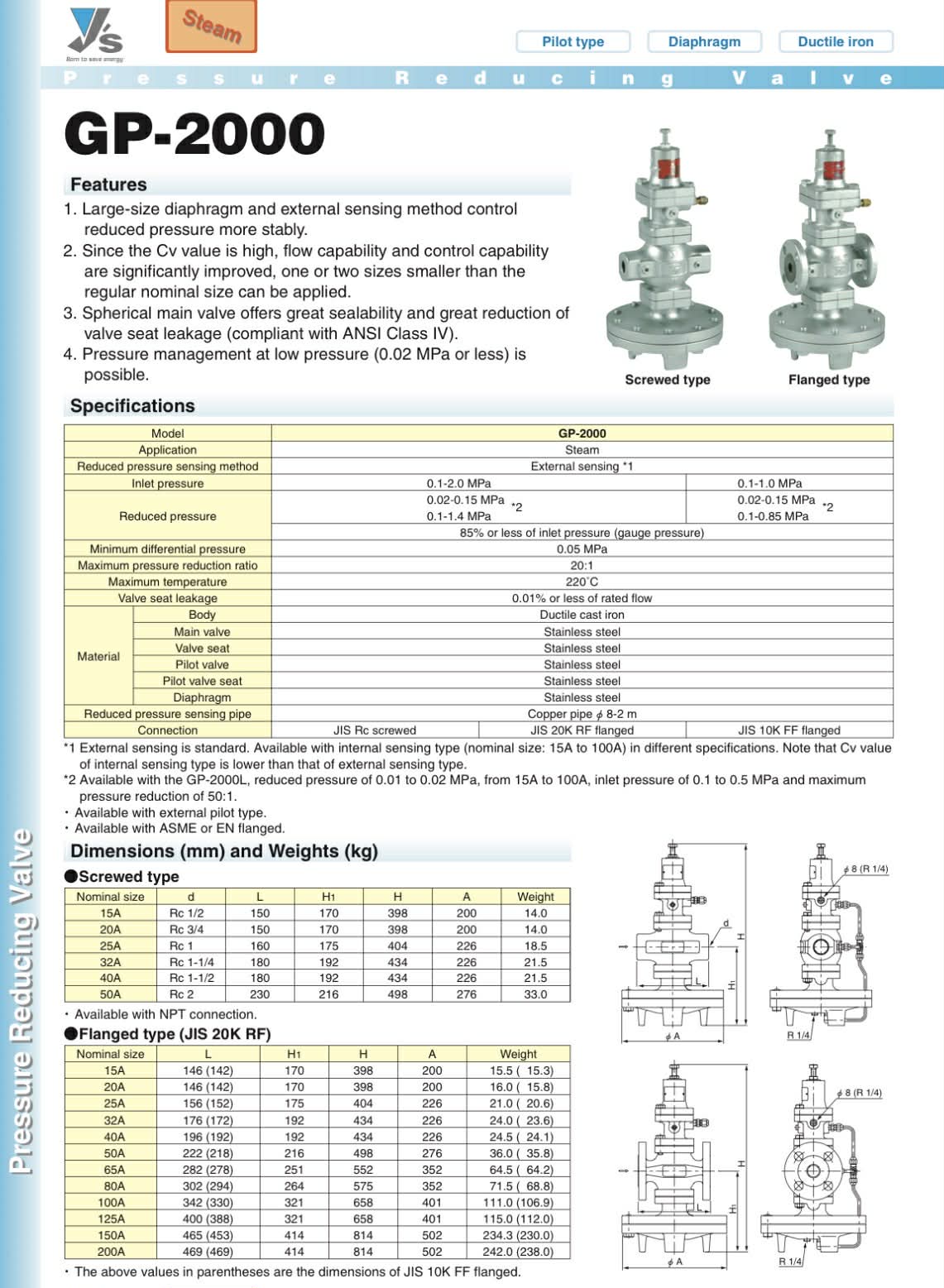 YOSHITAKE PRESSURE REDUCING VALVE GP-2000 JIS20K