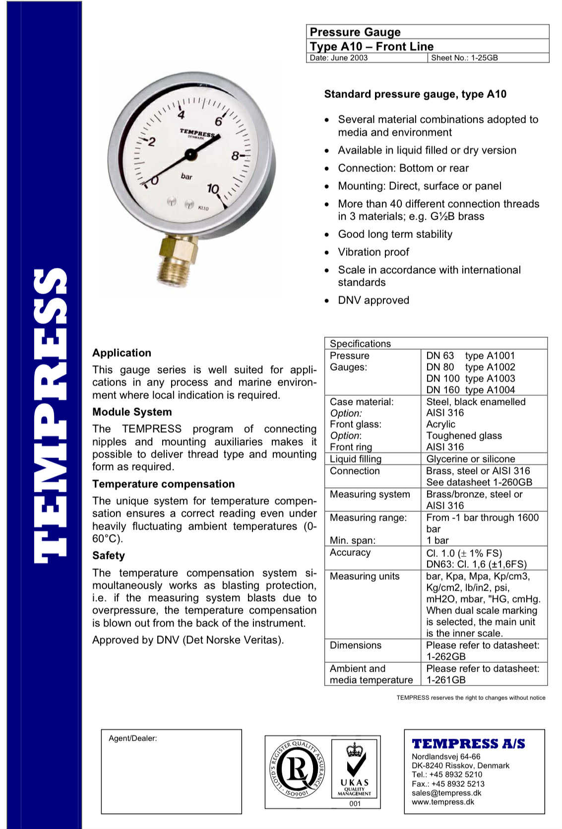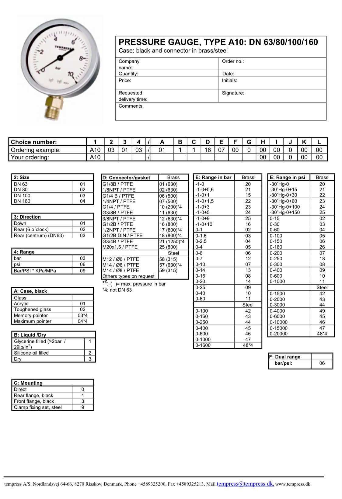 TEMPRESS Pressure Gauge DN63 Type A10