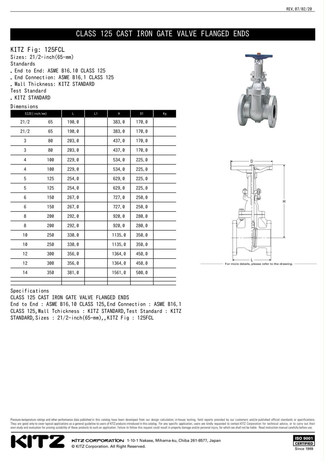 "KITZ" CAST IRON GLOBE VALVE ,125FCL