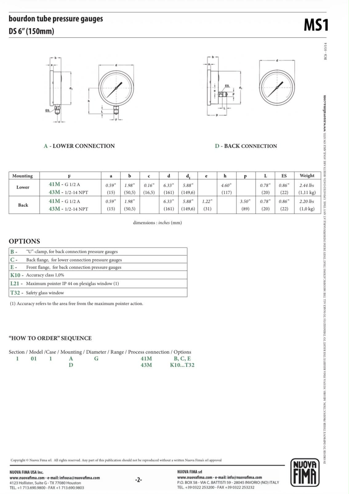 NUOVA FIMA PRESSURE GAUGE MS1 DS150
