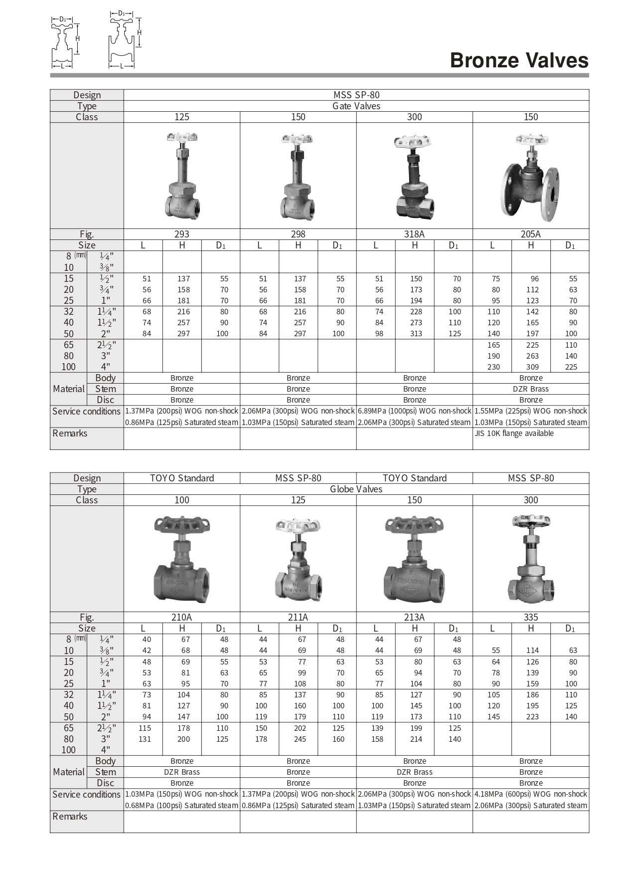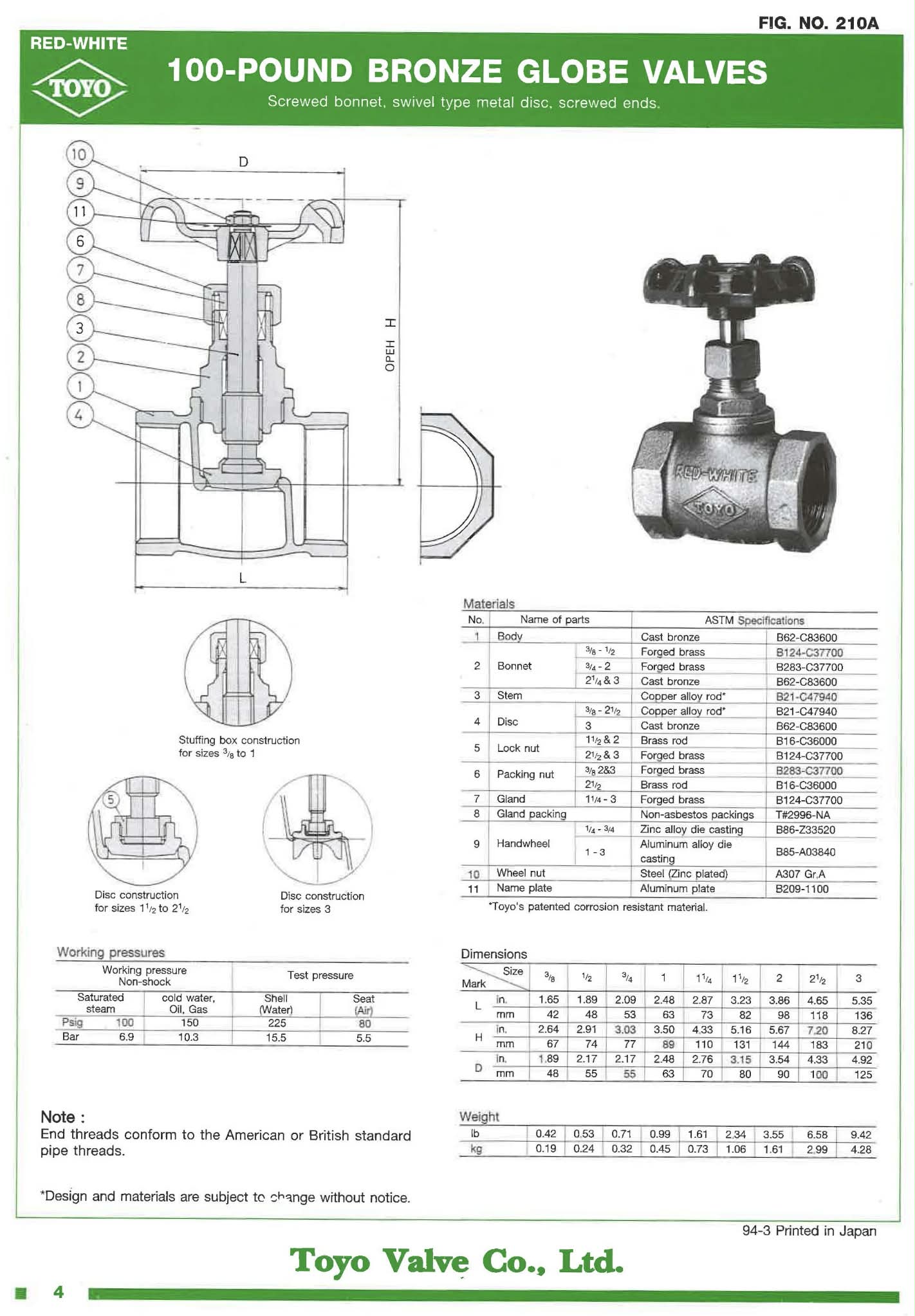 TOYO 100 PSI Bronze Globe Vaves ,210A