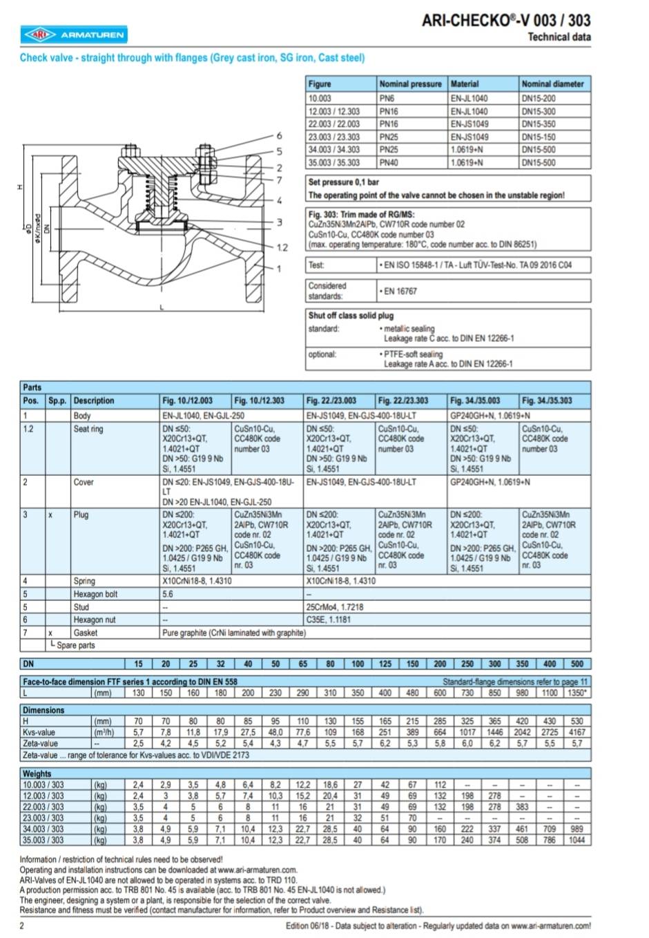 ARI LIFE CHECK VALVE FLANGED PN 16