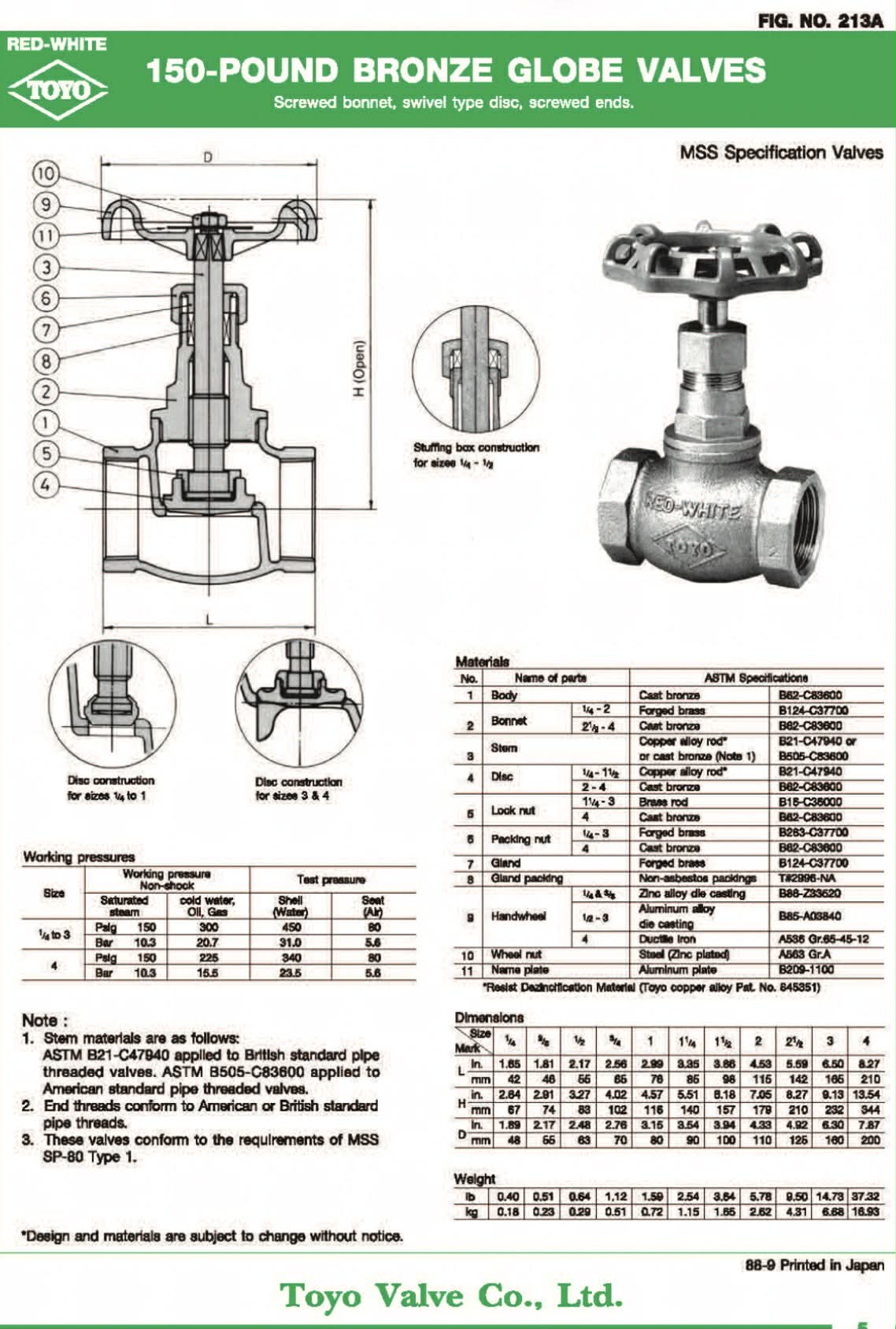 TOYO 150 PSI Bronze Globe Vaves ,213A