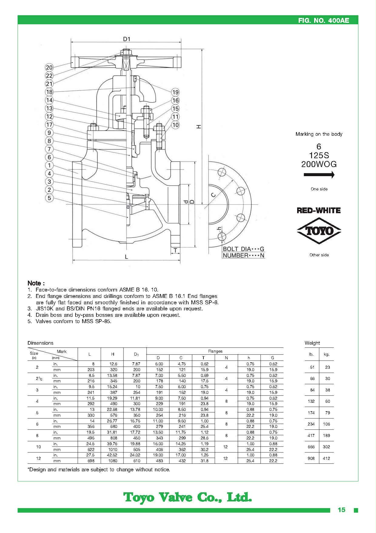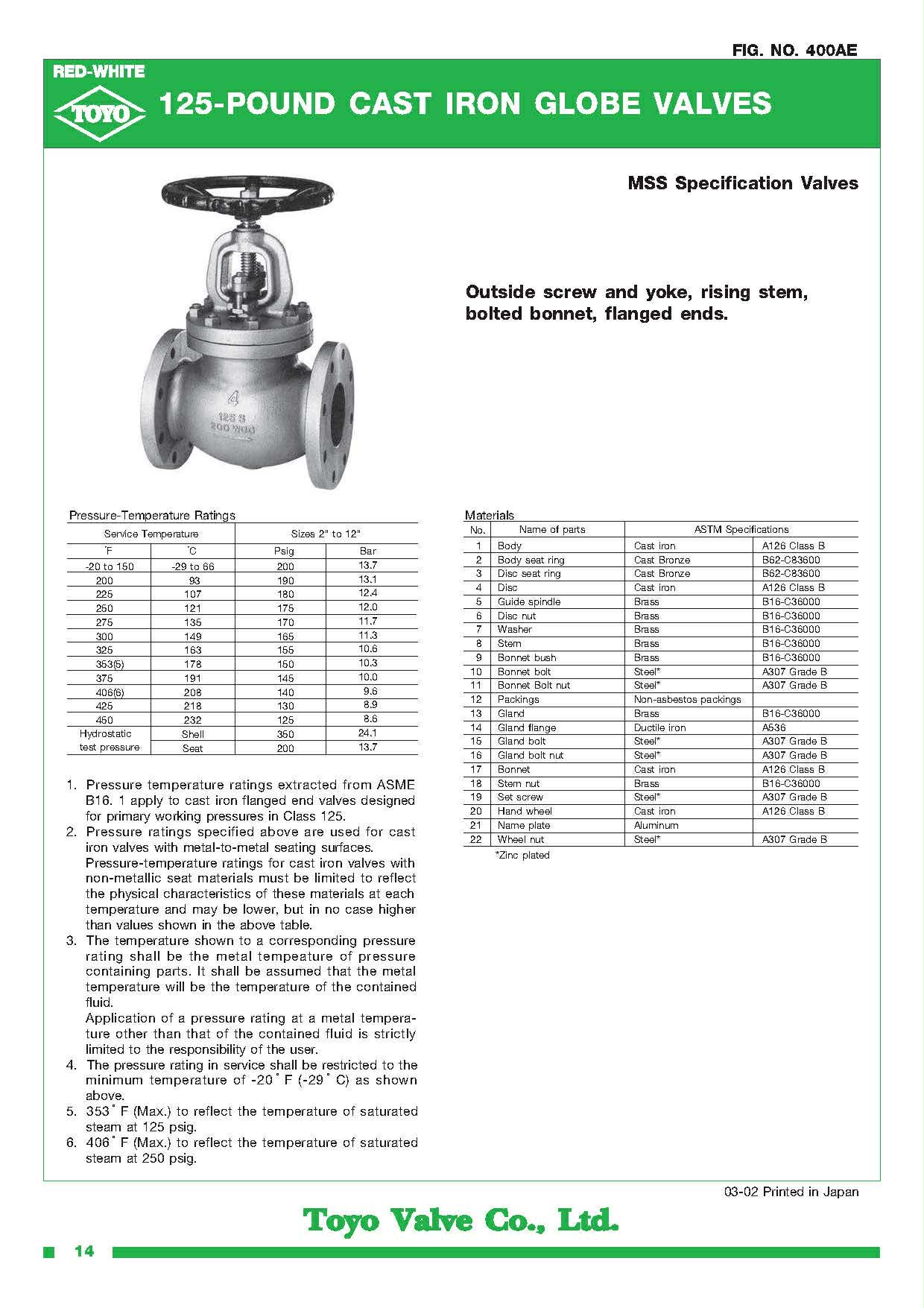 TOYO Cast Iron Globe Valve Flange ANSI125 ,400AF