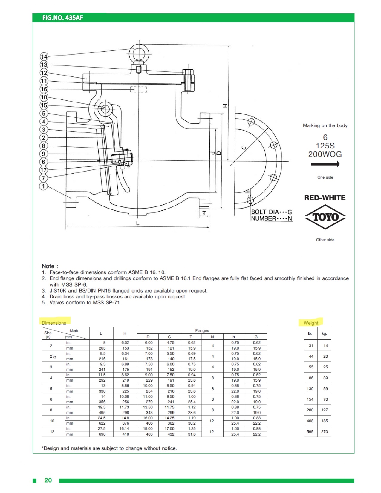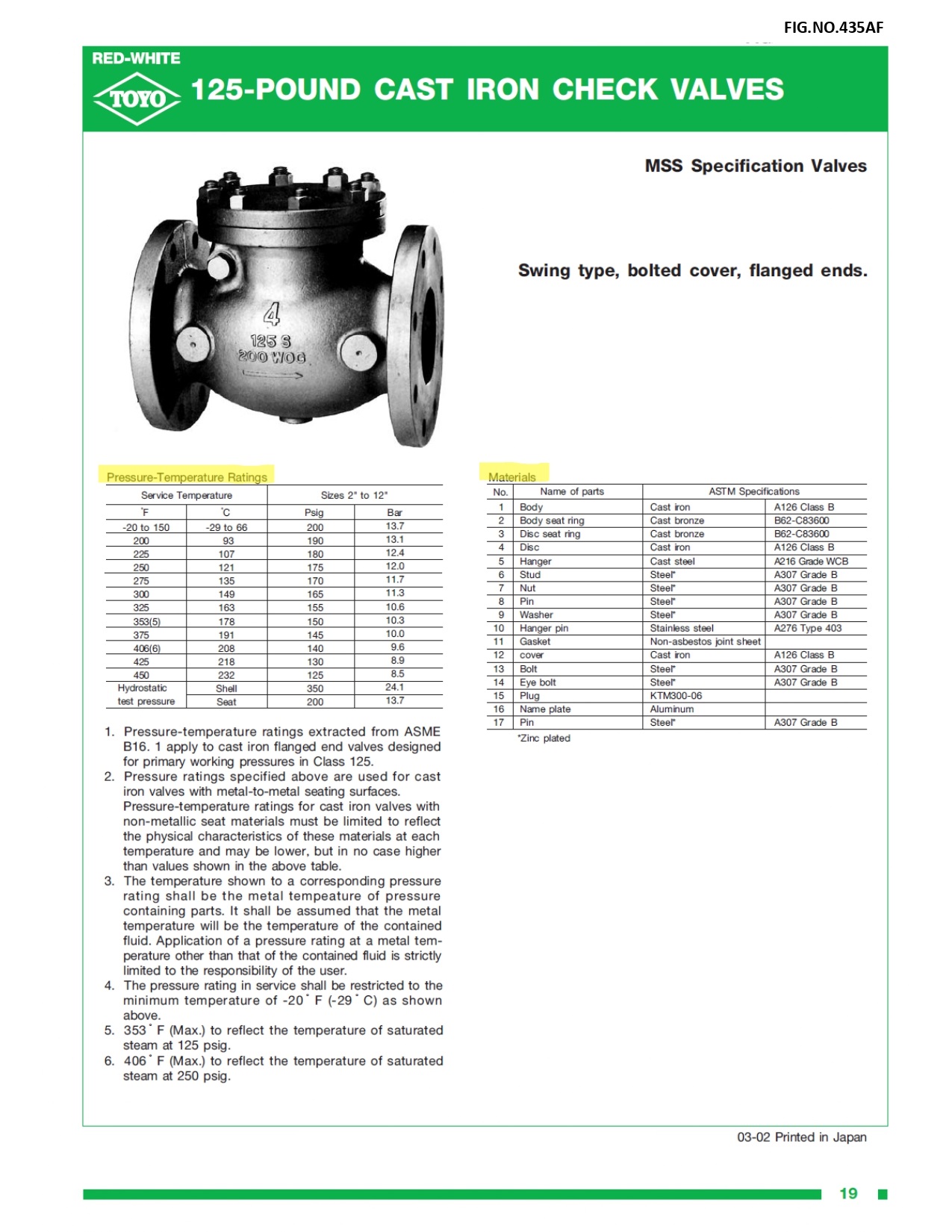 TOYO Cast Iron Swing Check Valve 435AF ,ANSI 125