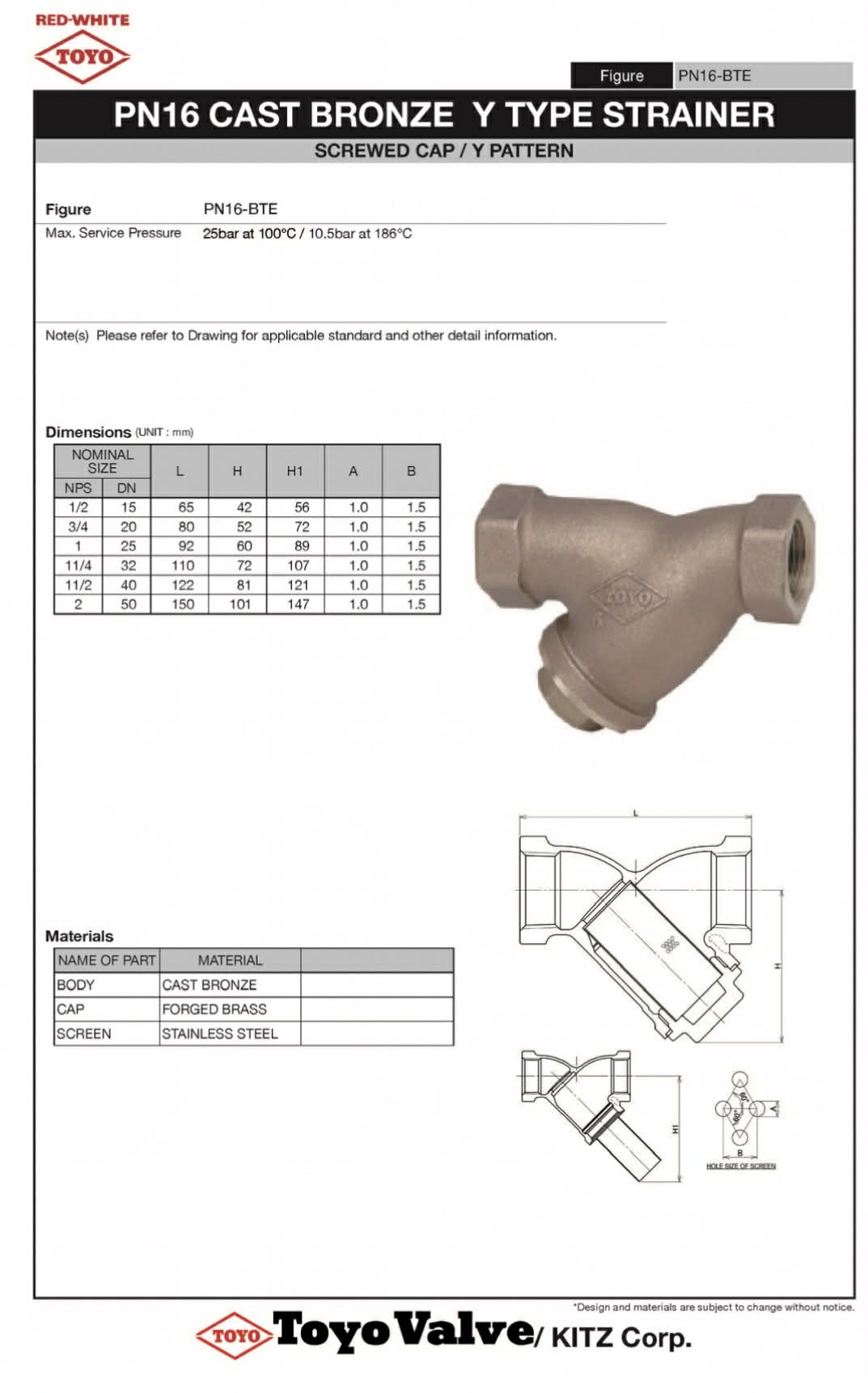 TOYO BROZE Y-STRAINER ,PN16-BTE