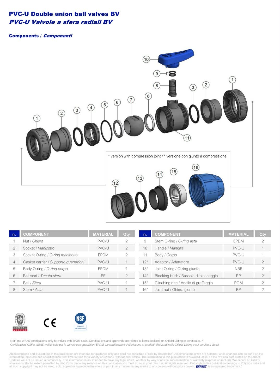 EFFAST TRUE UNION BALL VALVE UPVC , BV