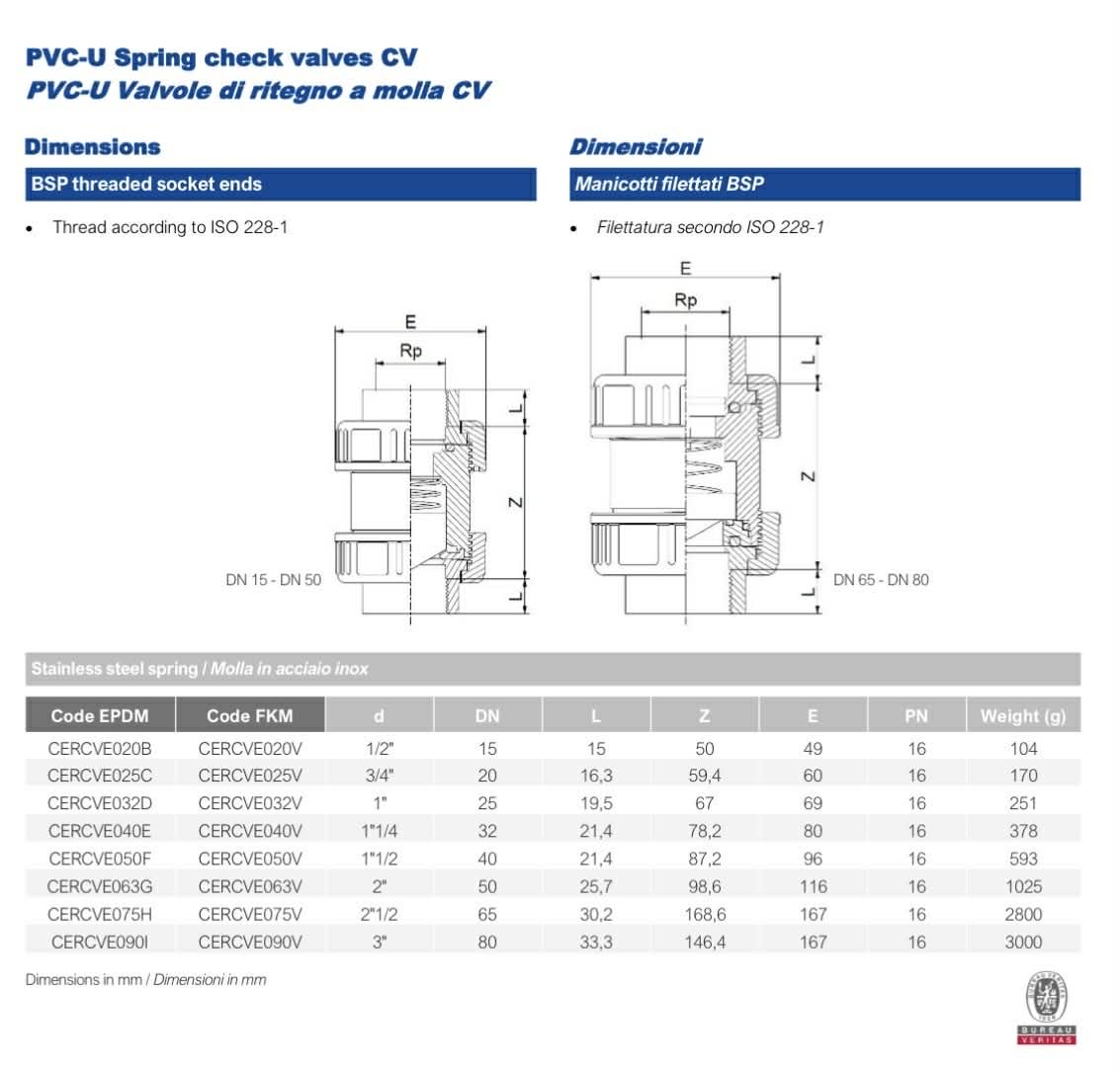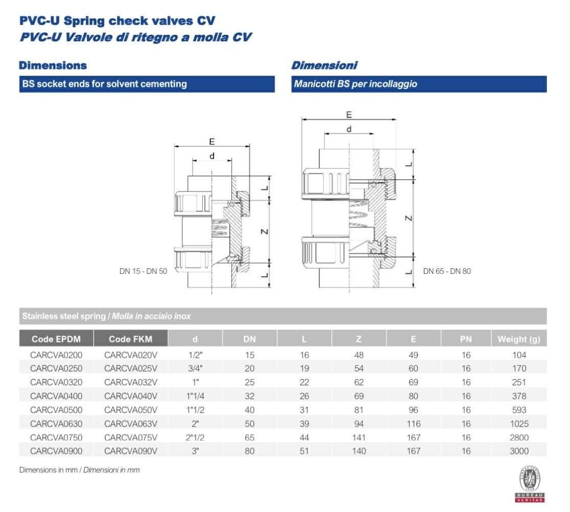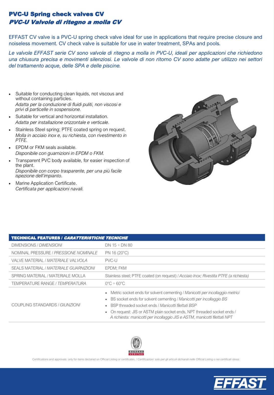 EFFAST TRUE UNION CHECK VALVE UPVC , CV EPDM