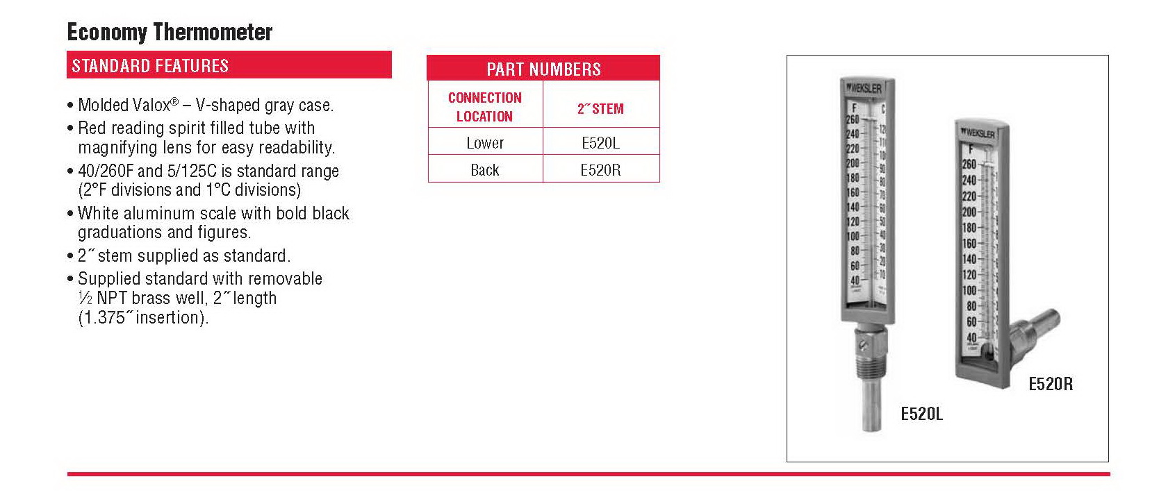 "WEKSLER" ECONOMY THERMOMETER E520R , BACK