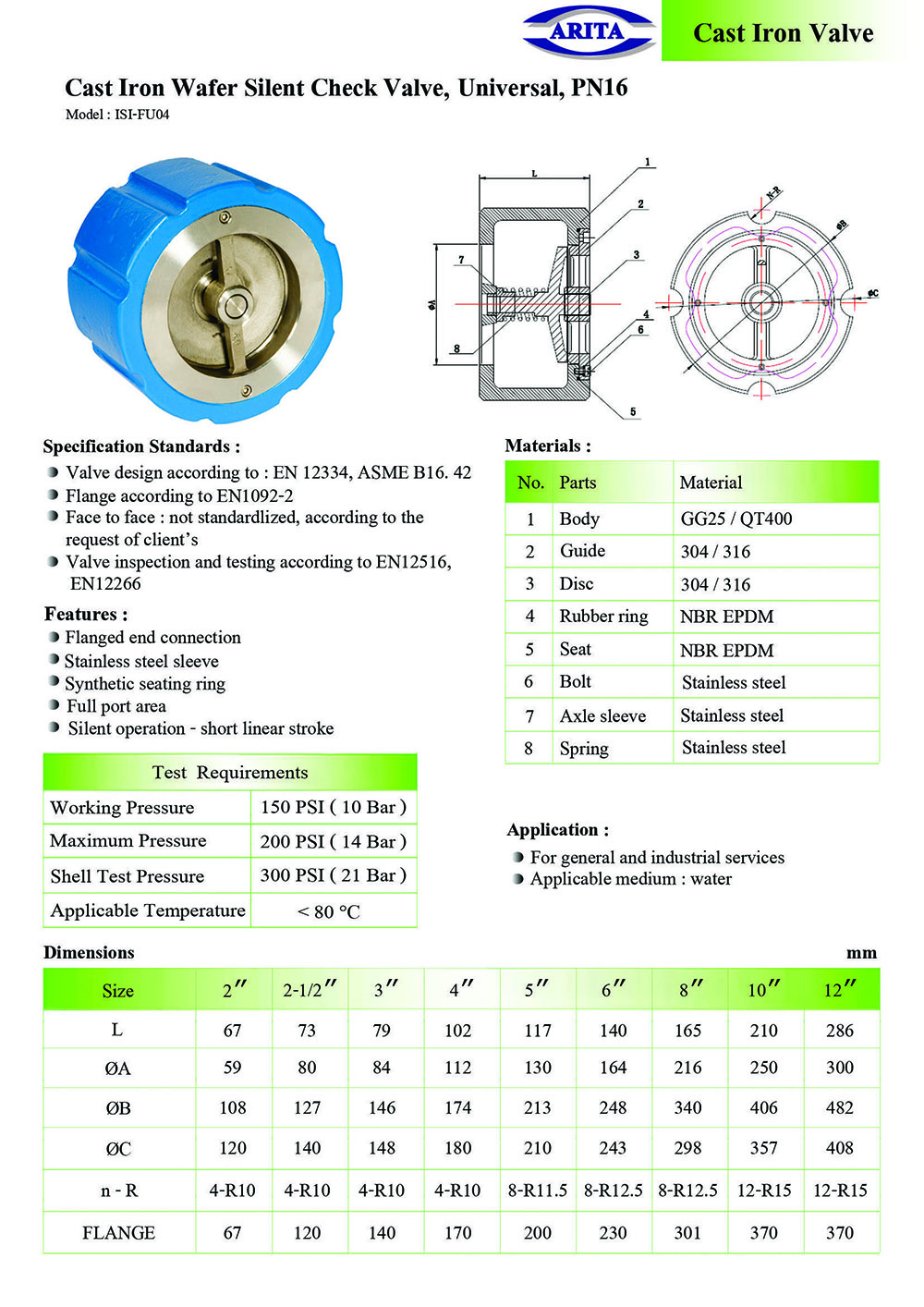 ARITA Wafer Type Silent Check Valve, Universal