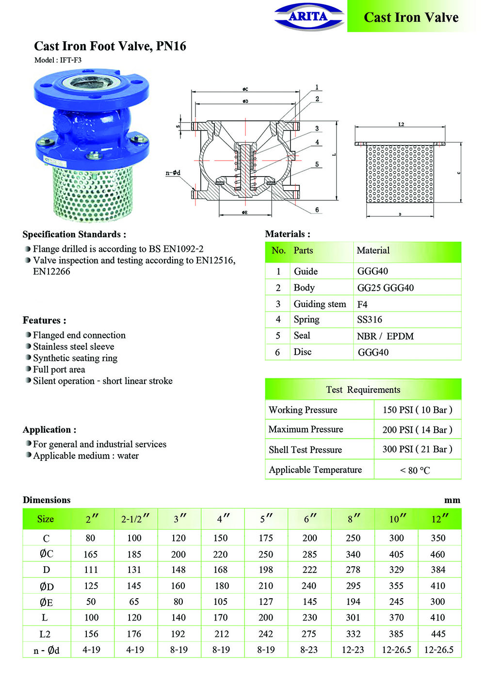 ARITA Cast Iron Foot Valve, PN16