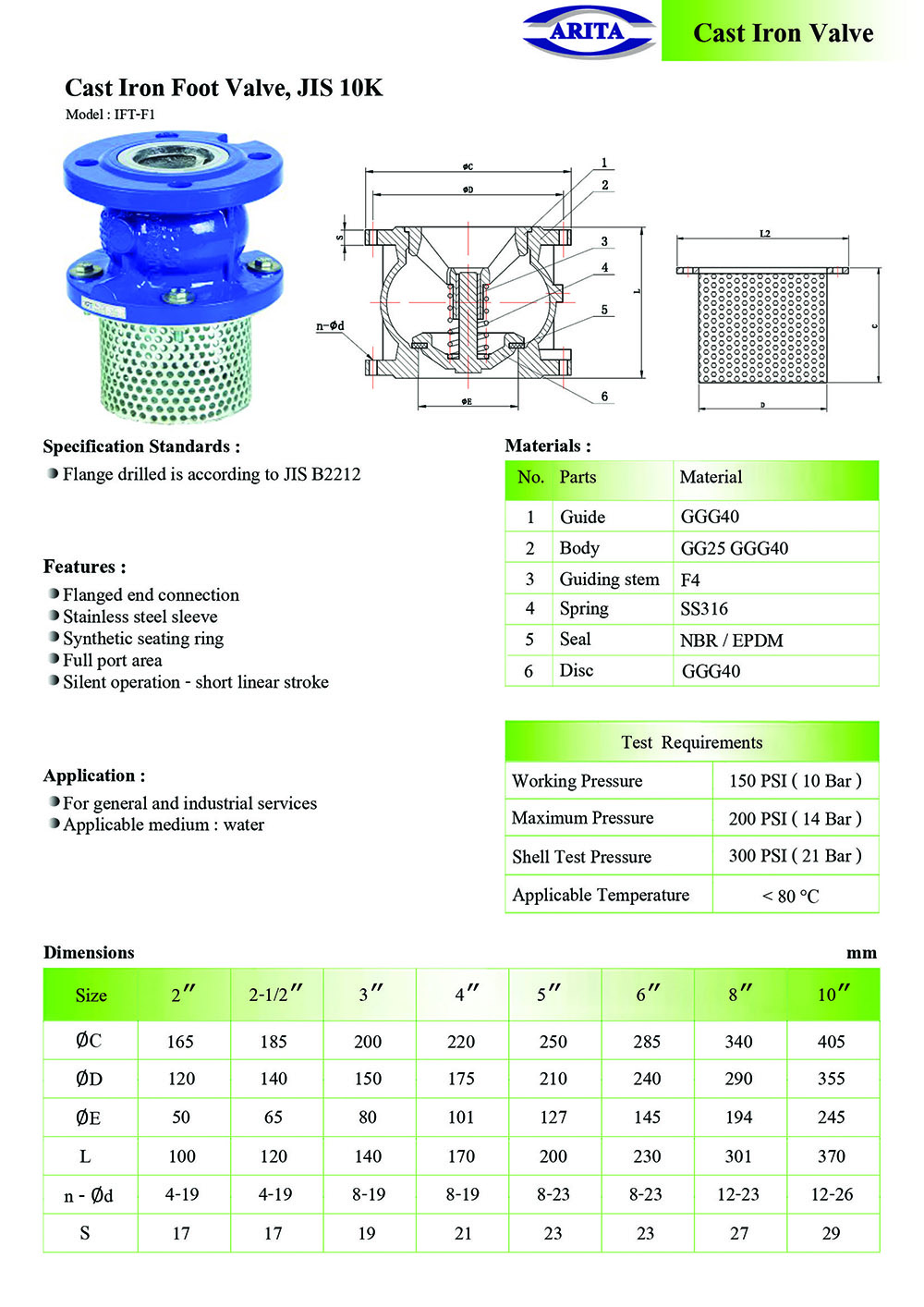 ARITA Cast Iron Foot Valve, JIS 10K