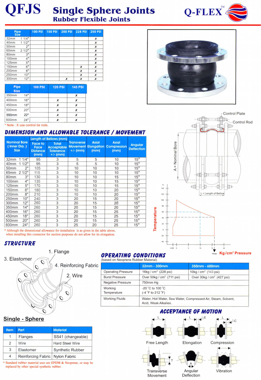 QFLEX Single Sphere Rubber Flexible Joint, Flanged Type
