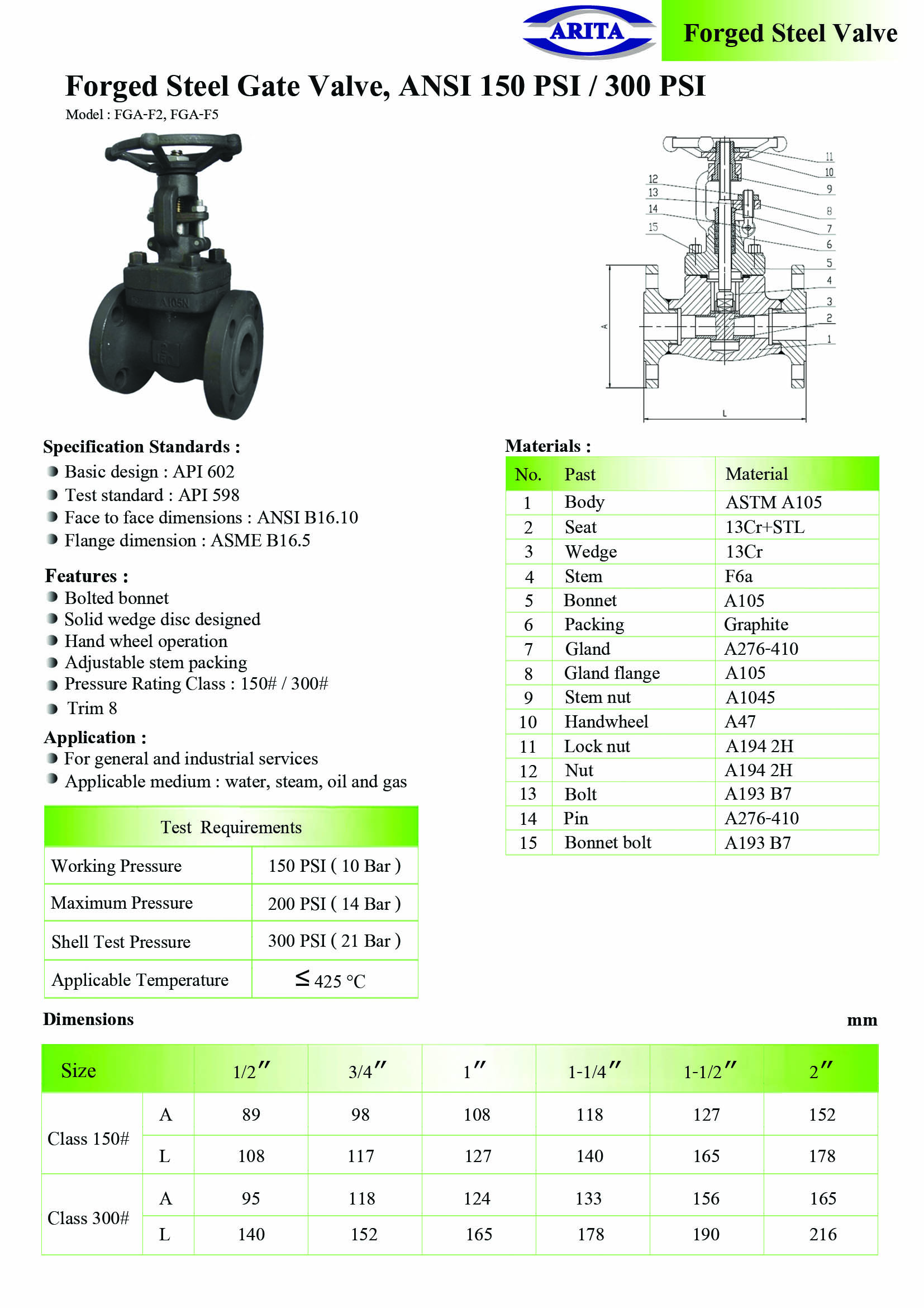 ARITA Forged Steel Gate Valve Class 150PSI & 300PSI