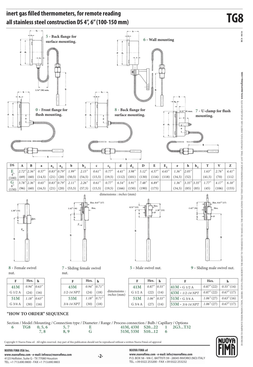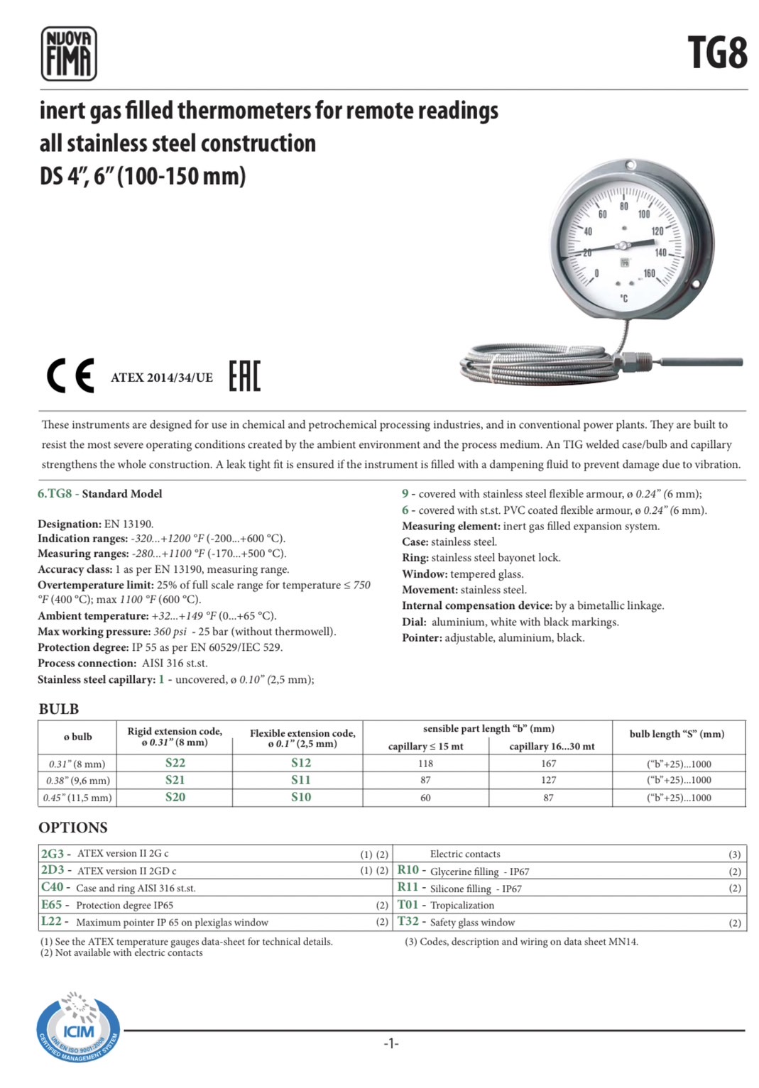 NUOVA FIMA Inert gas filled thermometers, TG8 DS150