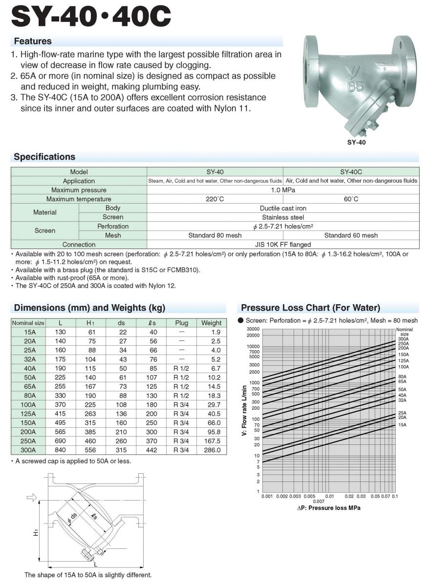 YS Y-STRAINER FLANGED JIS 10 K